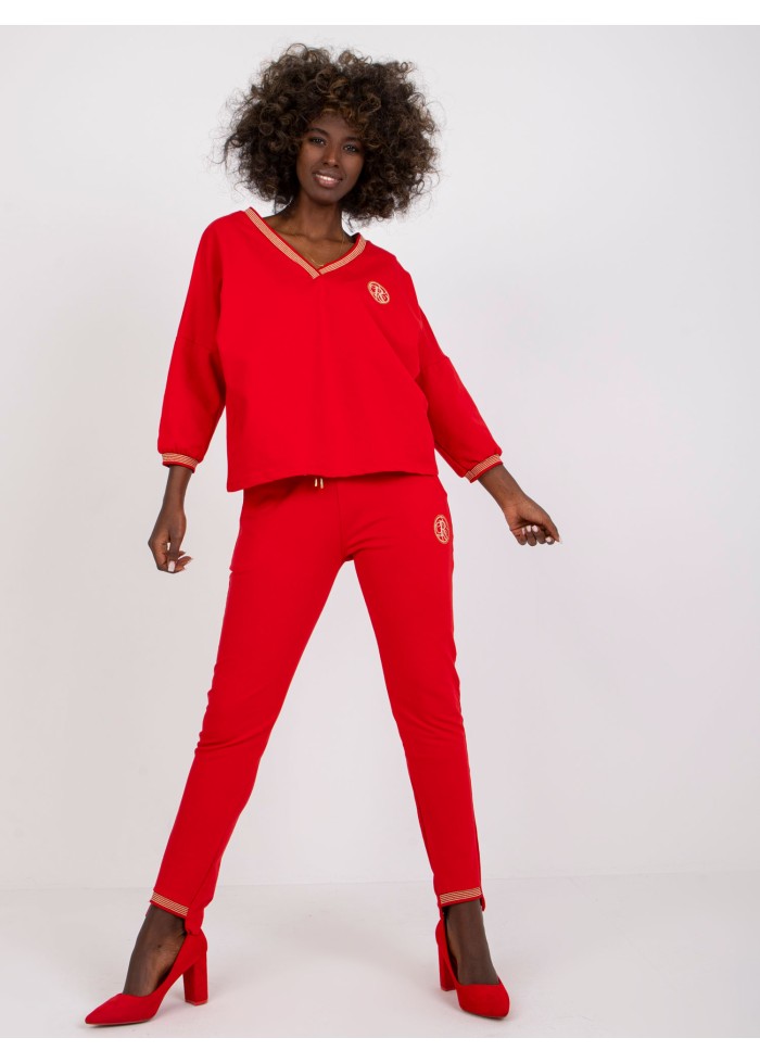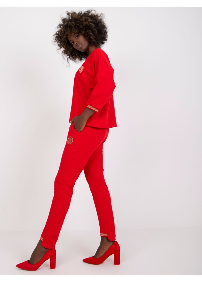 Dámska tepláková súprava, mikina, výstrih do v aj vzadu, ozdobné lémy na rukávoch a dekolte, ozdobná nášivka, 3/4 rukávy, dlhé nohavice na gumu v páse, kontrastná šnúrka, 2 vrecká, lémy na spodku nohavíc, spôsob prania: pranie v práčke na 30°c, materiál: 90% bavlna, 10% elastan, modelka má na sebe veľkosť s/m, miery modelky: výška: 169 cm, prsia: 86 cm, pás: 67 cm, boky: 88 cm, rozmer produktu meraného na plocho, vo veľkosti s/m:, šírka pod plecami: 64 cm, dĺžka rukáva: 46 cm, celková dĺžka: 57 cm, šírka nohavíc v páse: 36 cm, dĺžka nohavíc: 101 cm.