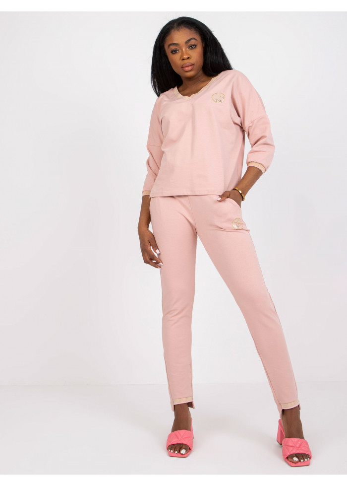 Dámska tepláková súprava, mikina, výstrih do v aj vzadu, ozdobné lémy na rukávoch a dekolte, ozdobná nášivka, 3/4 rukávy, dlhé nohavice na gumu v páse, kontrastná šnúrka, 2 vrecká, lémy na spodku nohavíc, spôsob prania: pranie v práčke na 30°c, materiál: 90% bavlna, 10% elastan, modelka má na sebe veľkosť s/m, miery modelky: výška: 169 cm, prsia: 86 cm, pás: 67 cm, boky: 88 cm, rozmer produktu meraného na plocho, vo veľkosti s/m:, šírka pod plecami: 64 cm, dĺžka rukáva: 46 cm, celková dĺžka: 57 cm, šírka nohavíc v páse: 36 cm, dĺžka nohavíc: 101 cm.