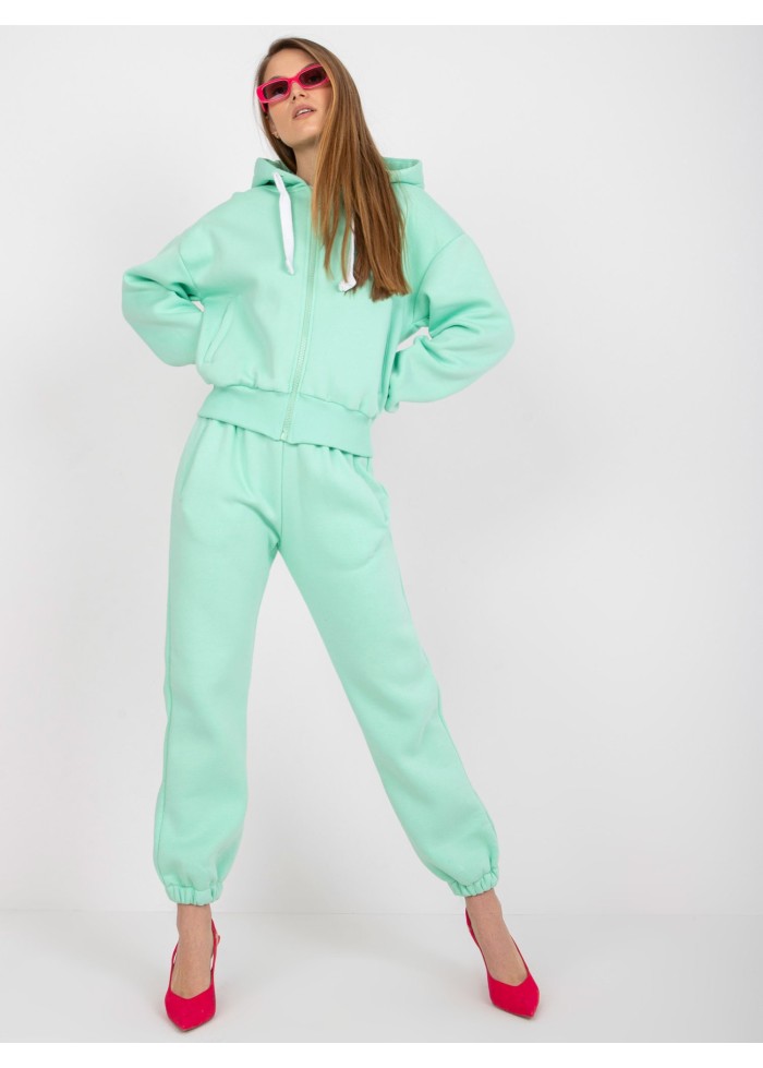 Dámska tepláková súprava, basic mikina s kapucňou, ozdobné šnúrky na kapucni, zapínanie na zips, 2 vrecká, lémy na koncoch rukávov a v spodnej časti, dlhé nohavice na gumu v páse, 2 bočné vrecká, guma na spodku nohavíc, spôsob prania: pranie v práčke na 30°c, materiál: 90% bavlna, 10% elastan, univerzálna veľkosť, miery modelky: výška: 181 cm, prsia: 87 cm, pás: 67 cm, boky: 96 cm, rozmer produktu meraného na plocho:, šírka pod plecami: 54 cm, dĺžka rukáva: 67 cm, celková dĺžka: 58 cm, šírka nohavíc v páse: 38 cm, dĺžka nohavíc: 95 cm.