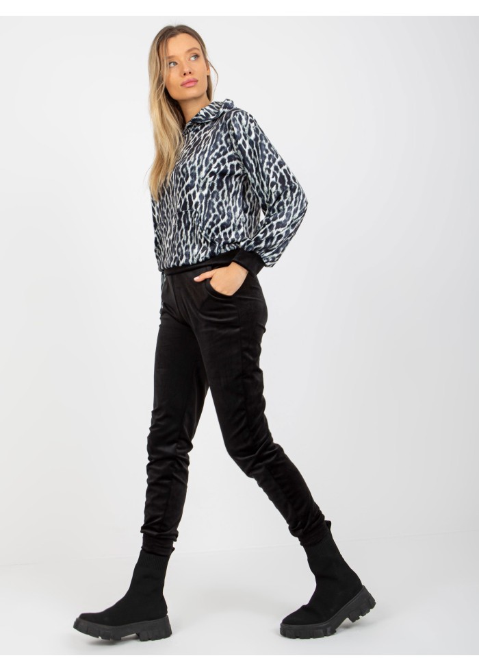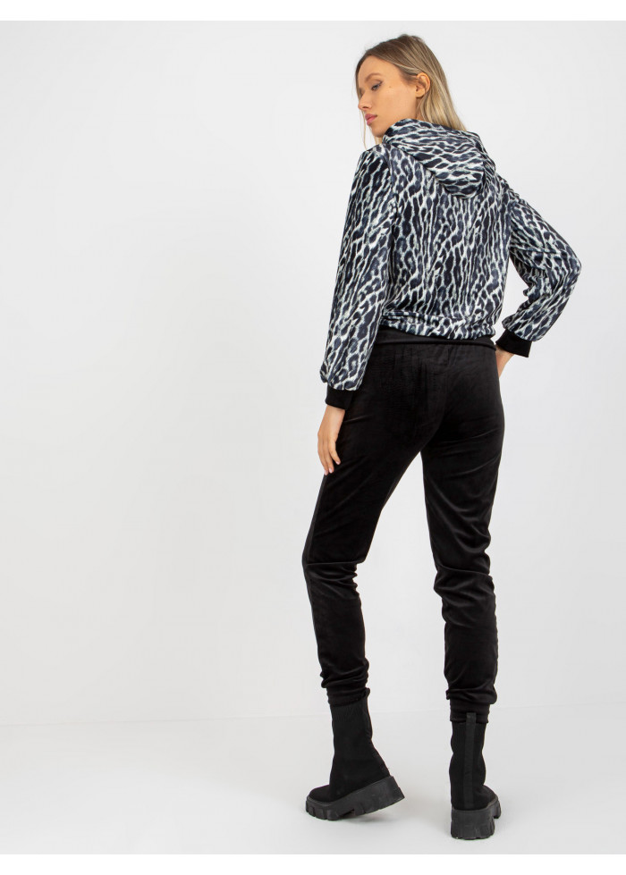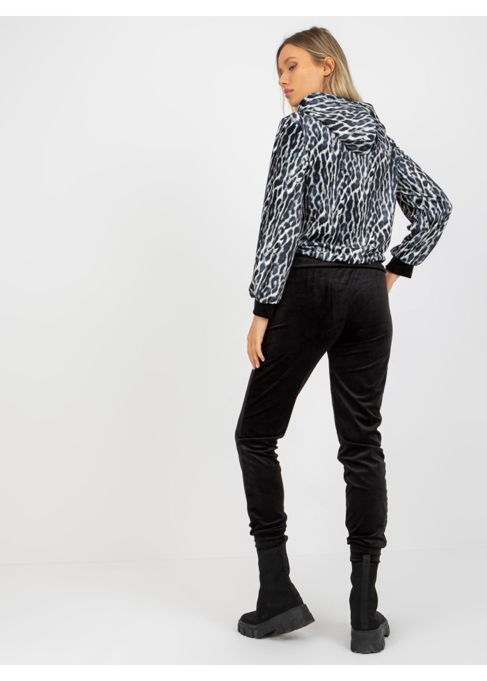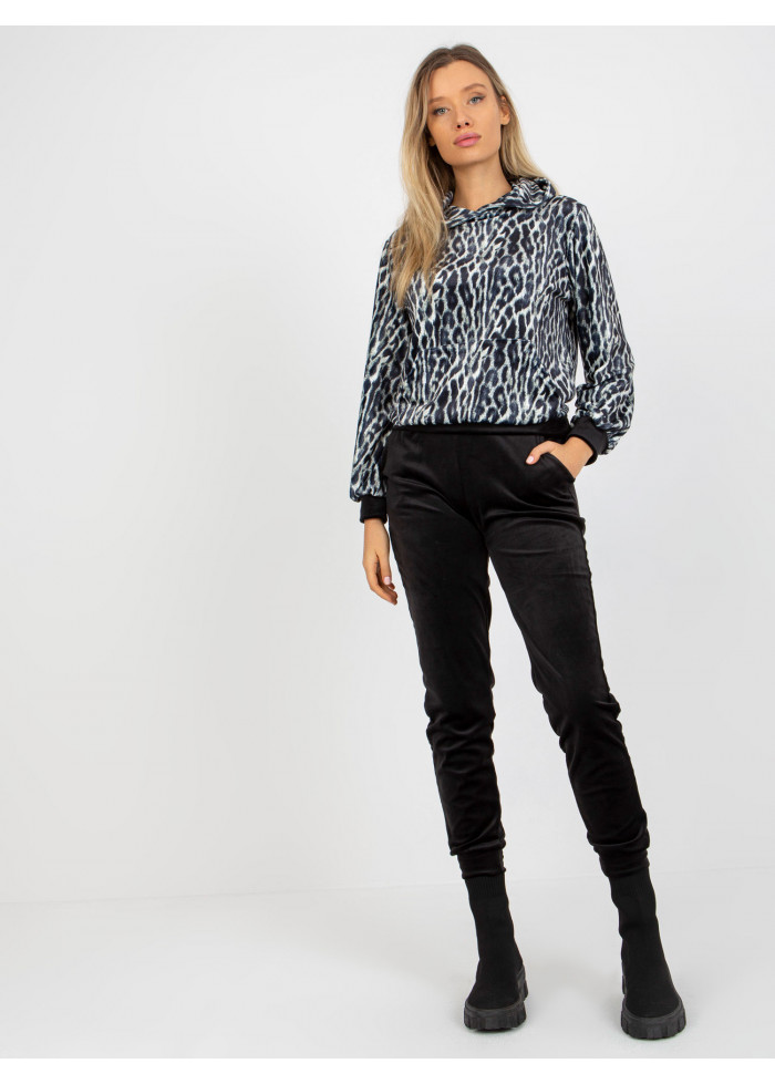 Dámska tepláková súprava, velúrová tepláková súprava, zvierací vzor, basic mikina s kapucňou, obliekanie cez hlavu, klokanie vrecko, lémy na konci rukávov, tepláky na gumu v páse, lémy na spodku nohavíc, 2 vrecká, spôsob prania: pranie v práčke na 30°c, modelka má na sebe veľkosť s, miery modelky: výška: 178 cm, prsia: 89 cm, pás: 65 cm, boky: 95 cm, rozmer produktu meraného na plocho, vo veľkosti s:, šírka pod plecami: 52 cm, dĺžka rukáva: 60 cm, dĺžka mikiny: 58 cm, šírka nohavíc v pase: 32 cm, výška sedu: 29 cm, dĺžka nohavíc: 96 cm.