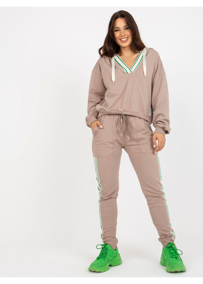 Dámska tepláková súprava, basic mikina s kapucňou, ozdobné šnúrky na kapucni, výstrih do v, lémy na koncoch rukávov a v spodnej časti, ozdobné nášivky, kratší strih, dlhé nohavice na gumu v páse, 2 vrecká, lémy na spodku nohavíc, ozdobné lampasy, modelka má na sebe veľkosť s/m, miery modelky: výška: 175 cm, prsia: 84 cm, pás: 61 cm, boky: 91 cm, rozmer produktu meraného na plocho, vo veľkosti s/m:, šírka pod plecami: 60 cm, dĺžka rukáva: 57 cm, celková dĺžka: 50 cm, šírka nohavíc v páse: 36 cm, výška sedu: 28 cm, dĺžka nohavíc: 96 cm.