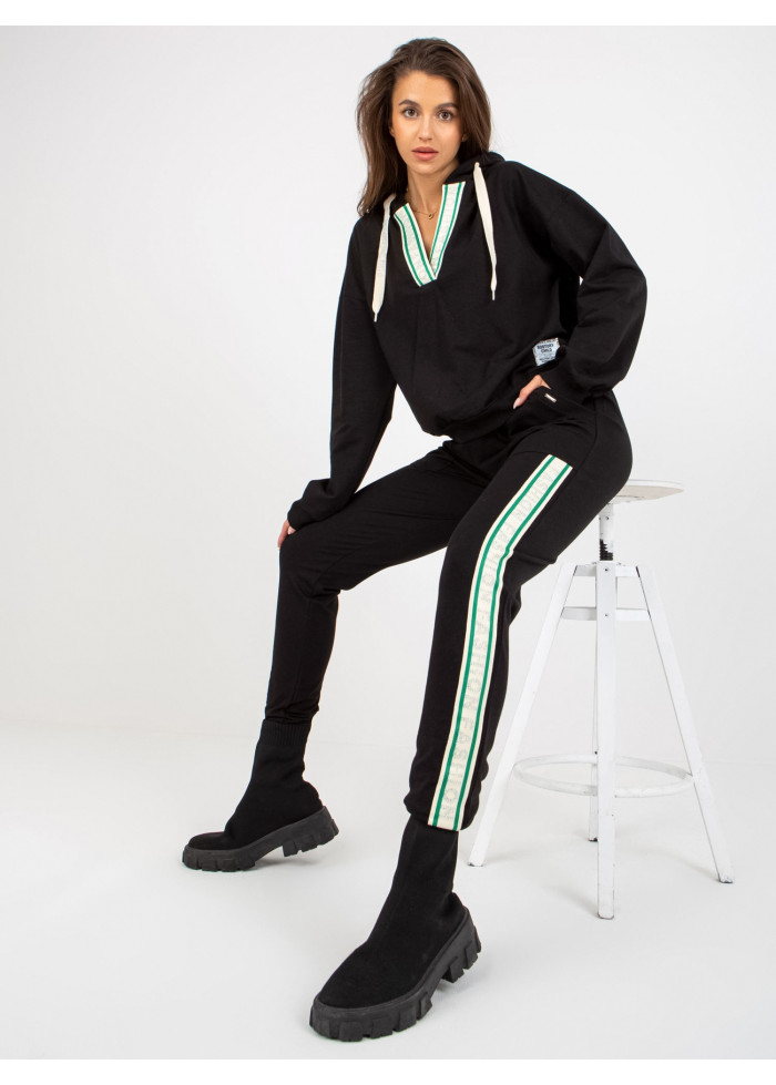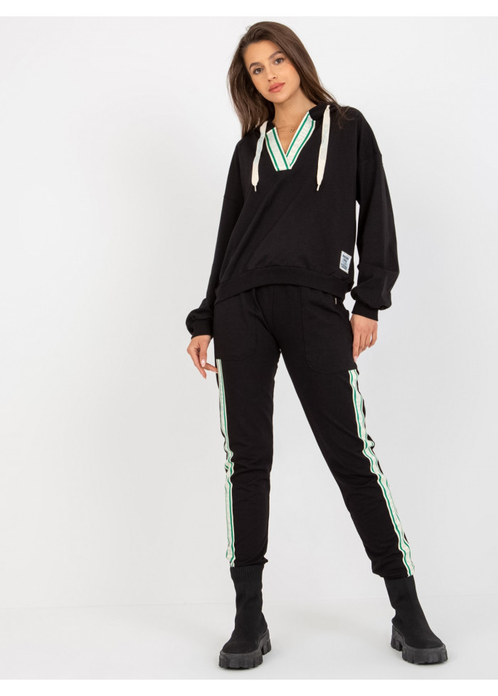 Dámska tepláková súprava, basic mikina s kapucňou, ozdobné šnúrky na kapucni, výstrih do v, lémy na koncoch rukávov a v spodnej časti, ozdobné nášivky, kratší strih, dlhé nohavice na gumu v páse, 2 vrecká, lémy na spodku nohavíc, ozdobné lampasy, modelka má na sebe veľkosť s/m, miery modelky: výška: 175 cm, prsia: 84 cm, pás: 61 cm, boky: 91 cm, rozmer produktu meraného na plocho, vo veľkosti s/m:, šírka pod plecami: 60 cm, dĺžka rukáva: 57 cm, celková dĺžka: 50 cm, šírka nohavíc v páse: 36 cm, výška sedu: 28 cm, dĺžka nohavíc: 96 cm.