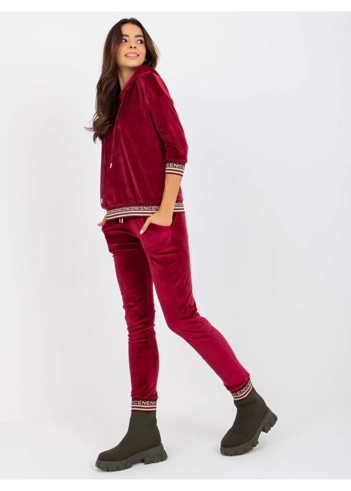 Dámska tepláková súprava, mikina, ozdobná šnúrka na golieri, ozdobné lémy na rukávoch a spodnej časti, dlhé nohavice na gumu v páse, lémy na spodku nohavíc, 2 vrecká, zamatový vzhľad, modelka má na sebe veľkosť s/m, miery modelky: výška: 172 cm, prsia: 88 cm, pás: 63 cm, boky: 92 cm, rozmer produktu meraného na plocho, vo veľkosti s/m:, šírka pod plecami: 57 cm, dĺžka rukáva: 45 cm, celková dĺžka: 60 cm, šírka nohavíc v páse: 36 cm, výška sedu: 26 cm, dĺžka nohavíc: 97 cm.
