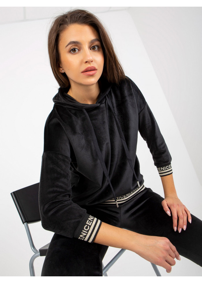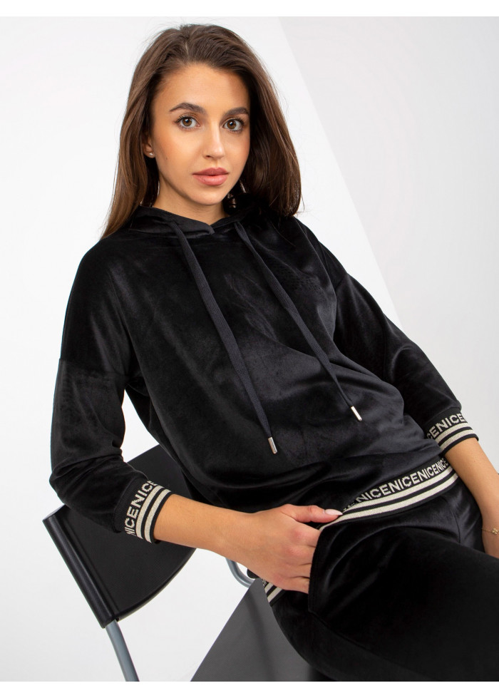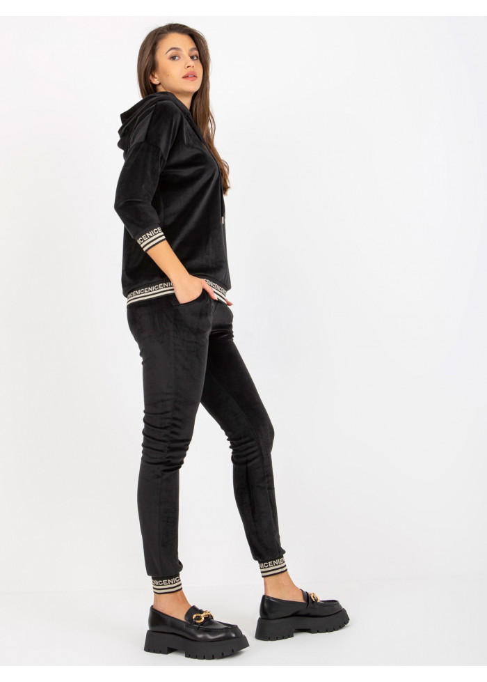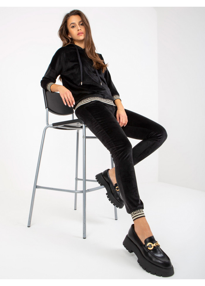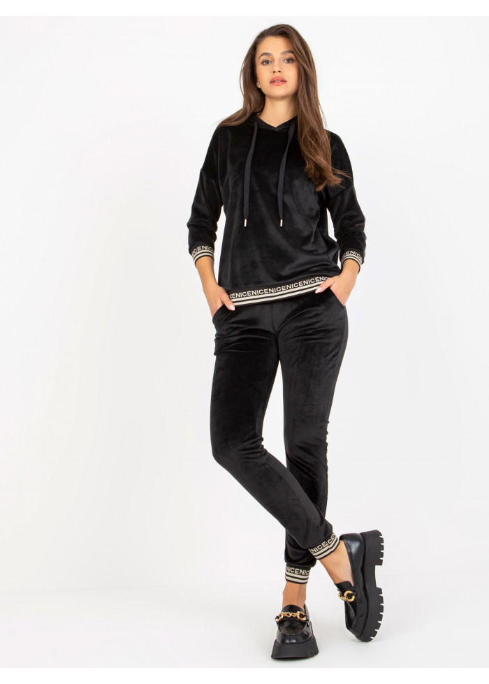 Dámska tepláková súprava, mikina, ozdobná šnúrka na golieri, ozdobné lémy na rukávoch a spodnej časti, dlhé nohavice na gumu v páse, lémy na spodku nohavíc, 2 vrecká, zamatový vzhľad, modelka má na sebe veľkosť s/m, miery modelky: výška: 172 cm, prsia: 88 cm, pás: 63 cm, boky: 92 cm, rozmer produktu meraného na plocho, vo veľkosti s/m:, šírka pod plecami: 57 cm, dĺžka rukáva: 45 cm, celková dĺžka: 60 cm, šírka nohavíc v páse: 36 cm, výška sedu: 26 cm, dĺžka nohavíc: 97 cm.