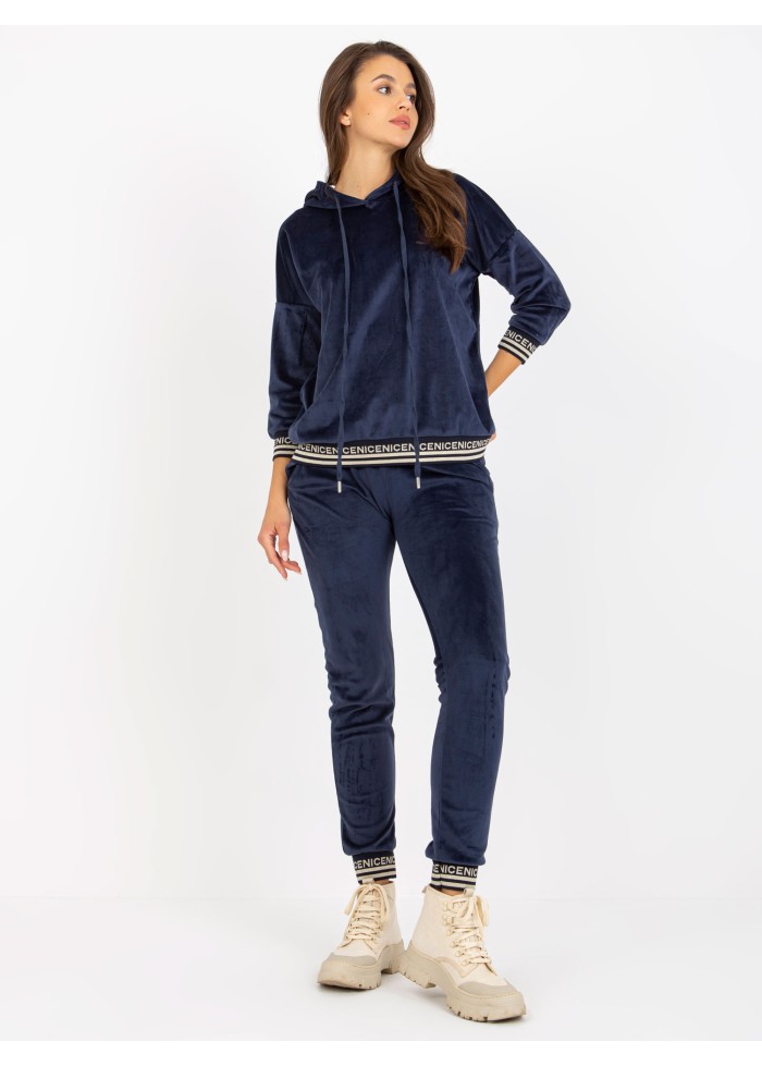 Dámska tepláková súprava, mikina, ozdobná šnúrka na golieri, ozdobné lémy na rukávoch a spodnej časti, dlhé nohavice na gumu v páse, lémy na spodku nohavíc, 2 vrecká, zamatový vzhľad, modelka má na sebe veľkosť s/m, miery modelky: výška: 172 cm, prsia: 88 cm, pás: 63 cm, boky: 92 cm, rozmer produktu meraného na plocho, vo veľkosti s/m:, šírka pod plecami: 57 cm, dĺžka rukáva: 45 cm, celková dĺžka: 60 cm, šírka nohavíc v páse: 36 cm, výška sedu: 26 cm, dĺžka nohavíc: 97 cm.