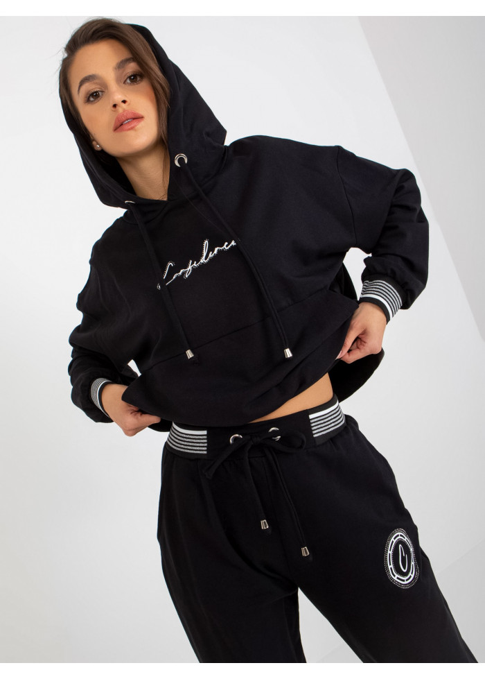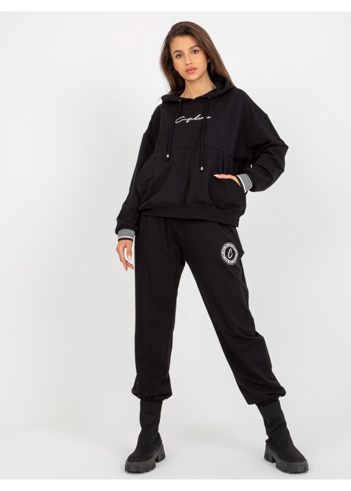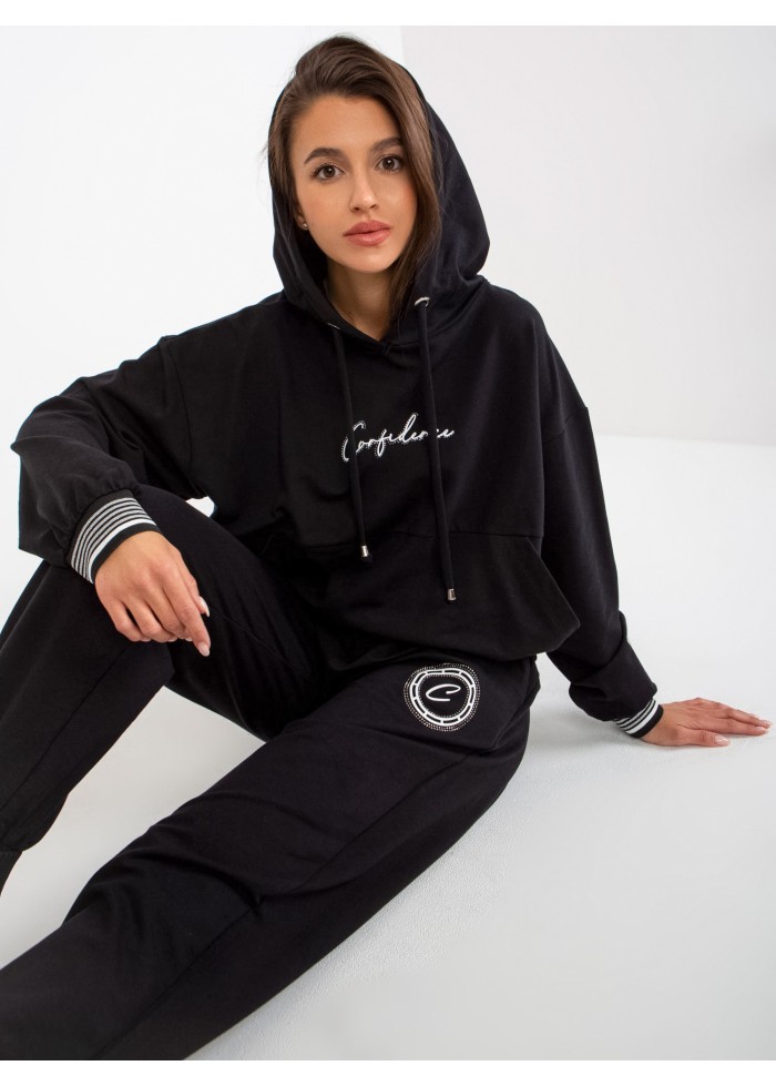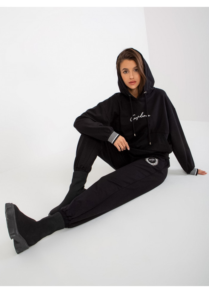 Dámska tepláková súprava, dámska mikina s kapucňou, šnúrka na kapucni, lémy na koncoch rukávov a v spodnej časti, ozdobný nápis, klokanie vrecko, dlhé nohavice na gumu v páse, ozdobná šnúrka v páse, guma na spodku nohavíc, 2 vrecká, modelka má na sebe veľkosť s/m, miery modelky: výška: 175 cm, prsia: 84 cm, pás: 61 cm, boky: 91 cm, rozmer produktu meraného na plocho, vo veľkosti s/m:, šírka pod plecami: 60 cm, dĺžka rukáva: 58 cm, celková dĺžka: 57 cm, šírka nohavíc v páse: 39 cm, dĺžka nohavíc: 99 cm.