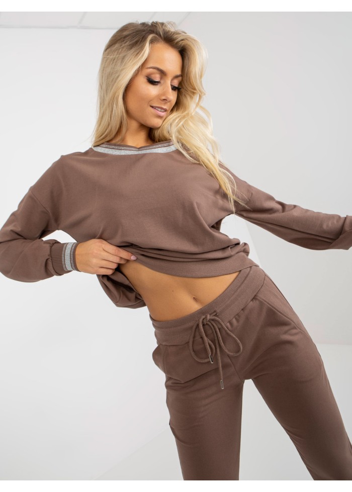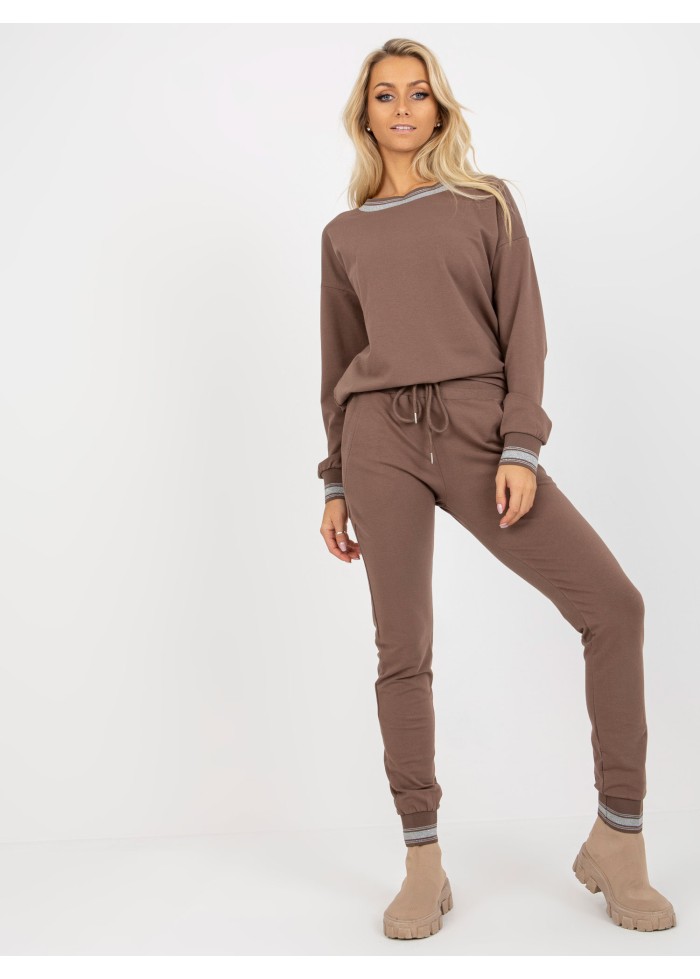 Dámska tepláková súprava, mikina, okrúhly výstrih, kontrastné lemy na koncoch rukávov a na dekolte, dlhé nohavice na gumu v páse, ozdobná šnúrka v páse, 2 vrecká, lémy na spodku nohavíc, modelka má na sebe veľkosť s/m, miery modelky: výška: 174 cm, prsia: 92 cm, pás: 62 cm, boky: 90 cm, rozmer produktu meraného na plocho:, šírka pod plecami: 51 cm, dĺžka rukáva: 60 cm, celková dĺžka: 78 cm, šírka nohavíc v páse: 37 cm, výška sedu: 28 cm, dĺžka nohavíc: 91 cm.
