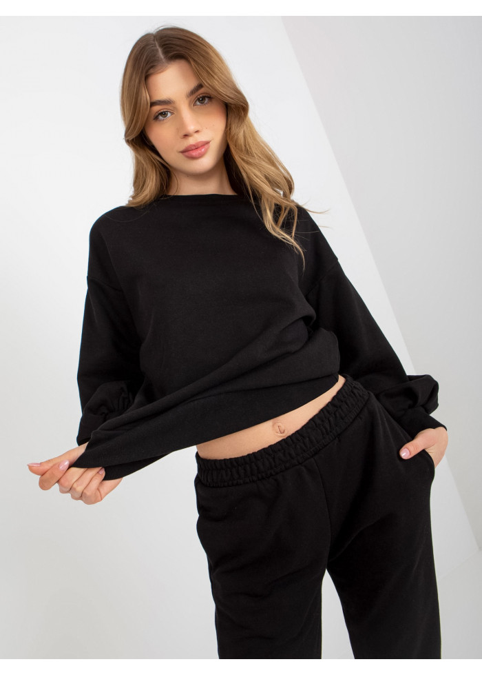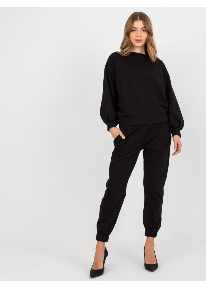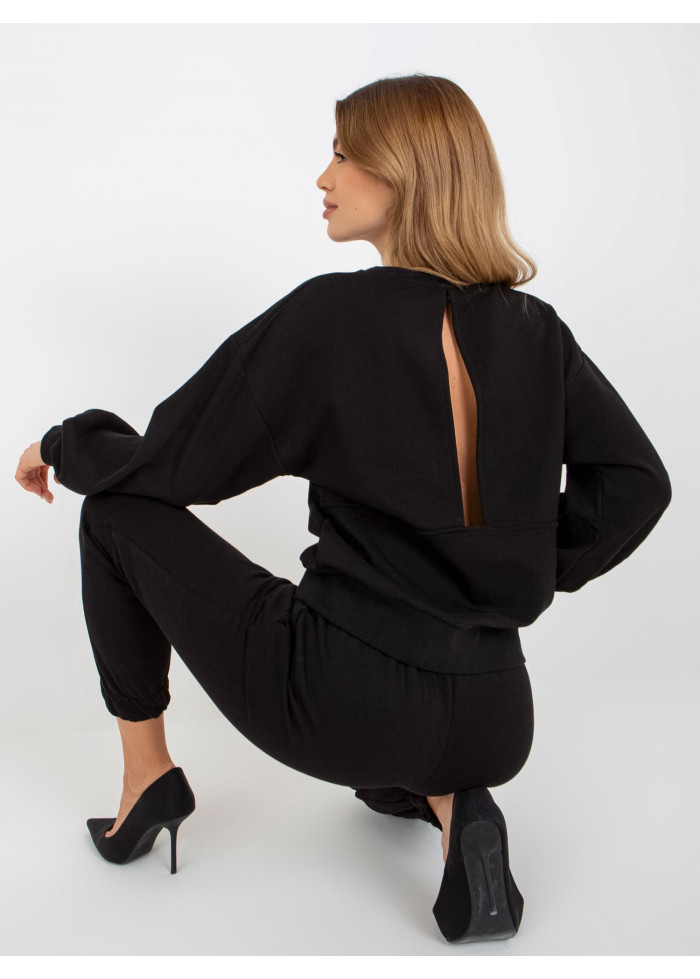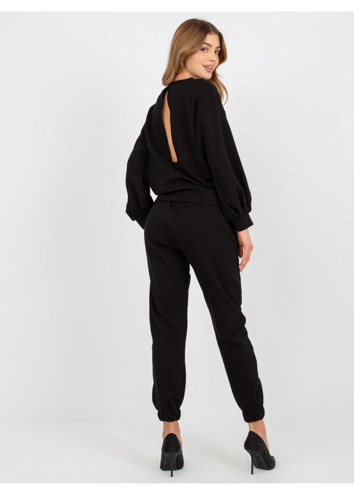 Dámska tepláková súprava, mikina, okrúhly výstrih, výrazný výstrih na chrbte, lémy na koncoch rukávov a v spodnej časti, nohavice na gumu v páse, ozdobná šnúrka v páse, 2 vrecká, modelka má na sebe veľkosť s/m, miery modelky: výška 175 cm, prsia 84 cm, pás 62 cm, boky 93 cm., rozmer produktu meraného na plocho, vo veľkosti s/m:, šírka pod plecami: 54 cm, dĺžka rukáva: 55 cm, celková dĺžka: 60 cm, šírka nohavíc v páse: 33 cm, výška sedu: 33 cm, dĺžka nohavíc: 95 cm.
