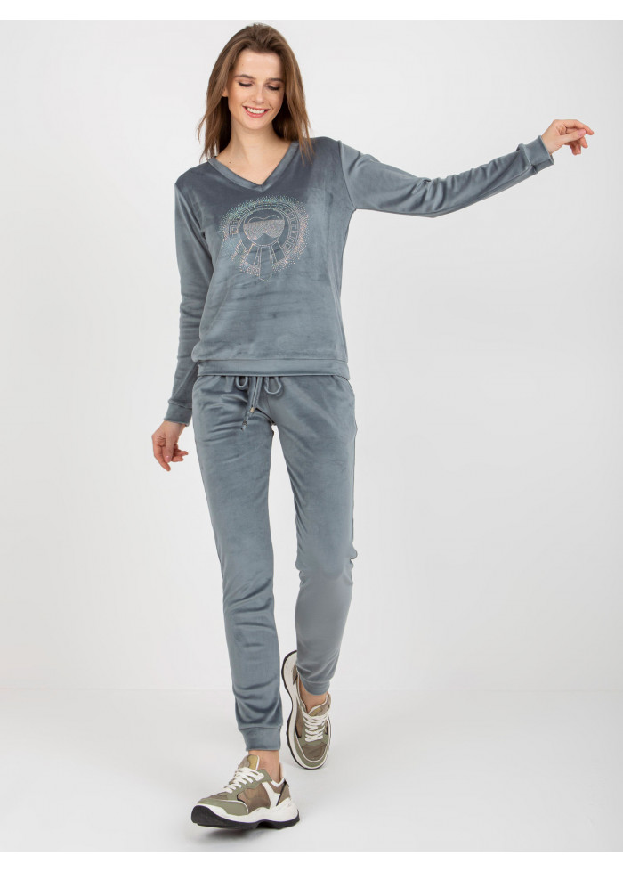 Dámska tepláková súprava, mikina, ozdobná potlač, výstrih do v, lémy na koncoch rukávov a v spodnej časti, dlhé nohavice na gumu v páse, ozdobná šnúrka v páse, 2 vrecká, lémy na spodku nohavíc, obtiahnutý strih, modelka má na sebe veľkosť s/m, miery modelky: výška: 168 cm, prsia: 89 cm, pás: 60 cm, boky: 91 cm, rozmer produktu meraného na plocho, vo veľkosti s/m:, šírka pod plecami: 52 cm, dĺžka rukáva: 58 cm, celková dĺžka: 64 cm, šírka nohavíc v páse: 34 cm, dĺžka nohavíc: 100 cm.