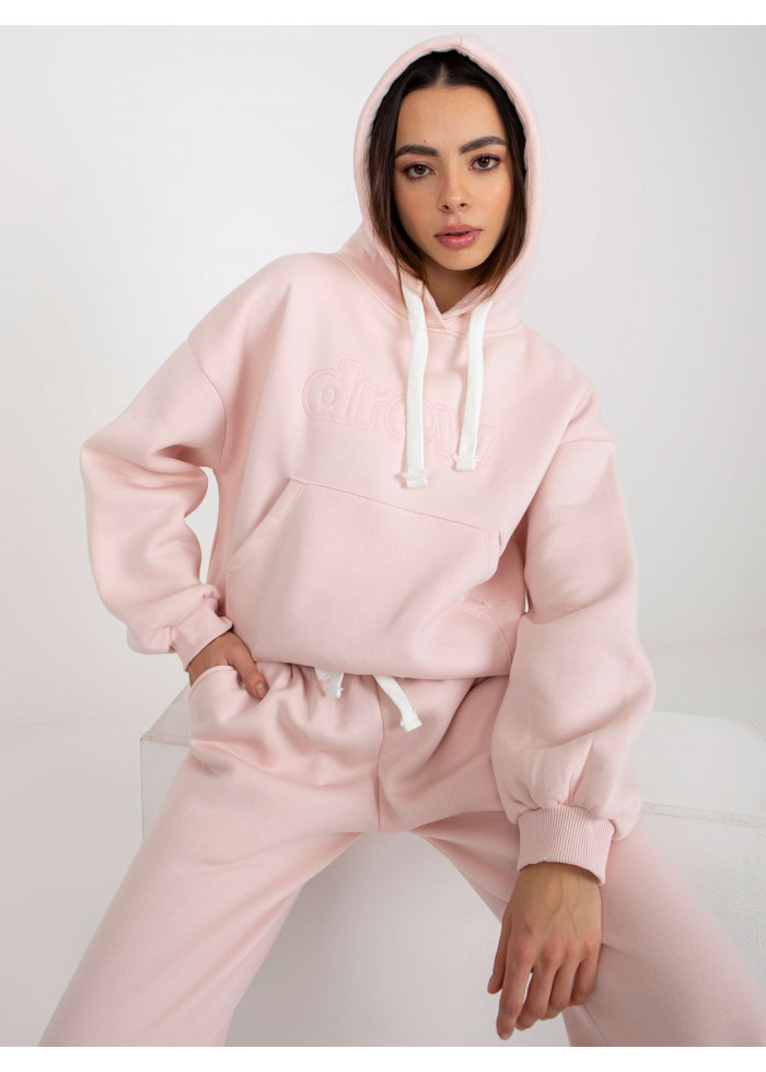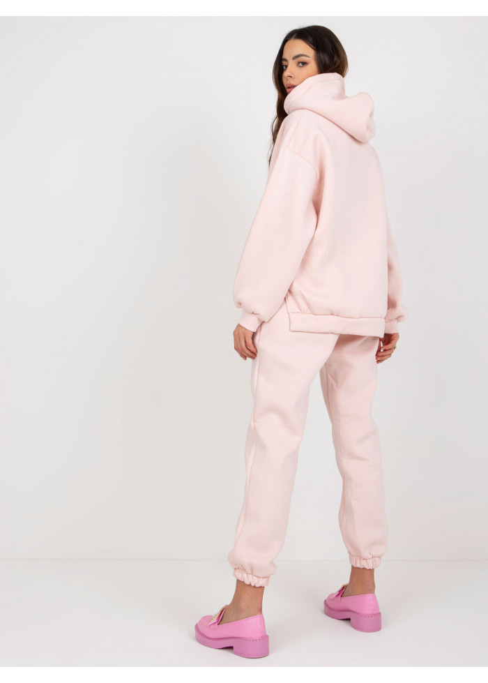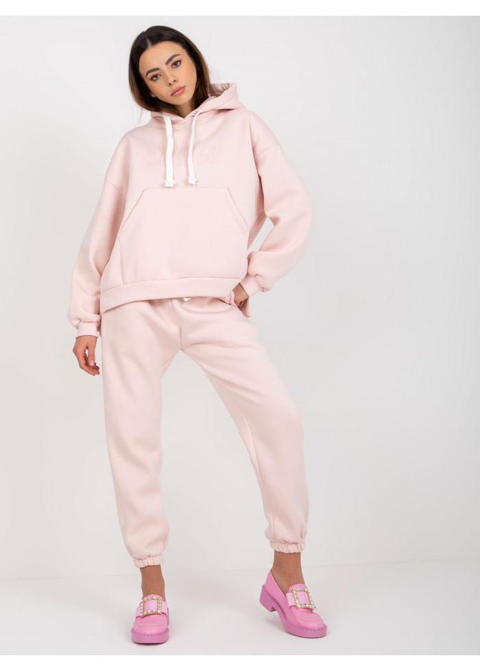 Dámska tepláková súprava, mikina s kapucňou, ozdobné šnúrky na kapucni, klokanie vrecko, ozdobný nápis, lémy na koncoch rukávov a v spodnej časti, malé rozparky po bokoch, dlhé nohavice na gumu v páse, ozdobná šnúrka v páse, 2 vrecká, guma na spodku nohavíc, univerzálna veľkosť, miery modelky: výška: 175 cm, prsia: 84 cm, pás: 61 cm, boky: 91 cm, rozmer produktu meraného na plocho:, šírka pod plecami: 65 cm, dĺžka rukáva: 60 cm, celková dĺžka: 72 cm, šírka nohavíc v páse: 36 cm, výška sedu: 30 cm, dĺžka nohavíc: 94 cm.