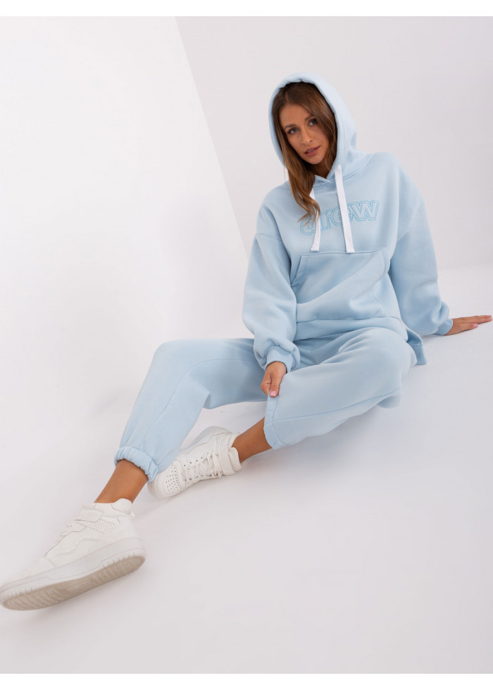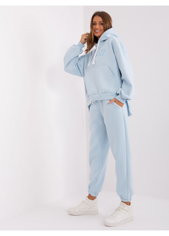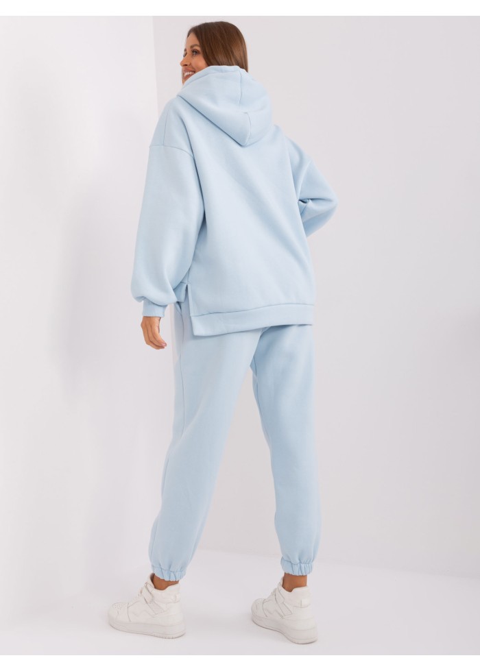 Dámska tepláková súprava, mikina s kapucňou, ozdobné šnúrky na kapucni, klokanie vrecko, ozdobný nápis, lémy na koncoch rukávov a v spodnej časti, malé rozparky po bokoch, dlhé nohavice na gumu v páse, ozdobná šnúrka v páse, 2 vrecká, guma na spodku nohavíc, univerzálna veľkosť, miery modelky: výška: 175 cm, prsia: 84 cm, pás: 61 cm, boky: 91 cm, rozmer produktu meraného na plocho:, šírka pod plecami: 65 cm, dĺžka rukáva: 60 cm, celková dĺžka: 72 cm, šírka nohavíc v páse: 36 cm, výška sedu: 30 cm, dĺžka nohavíc: 94 cm.