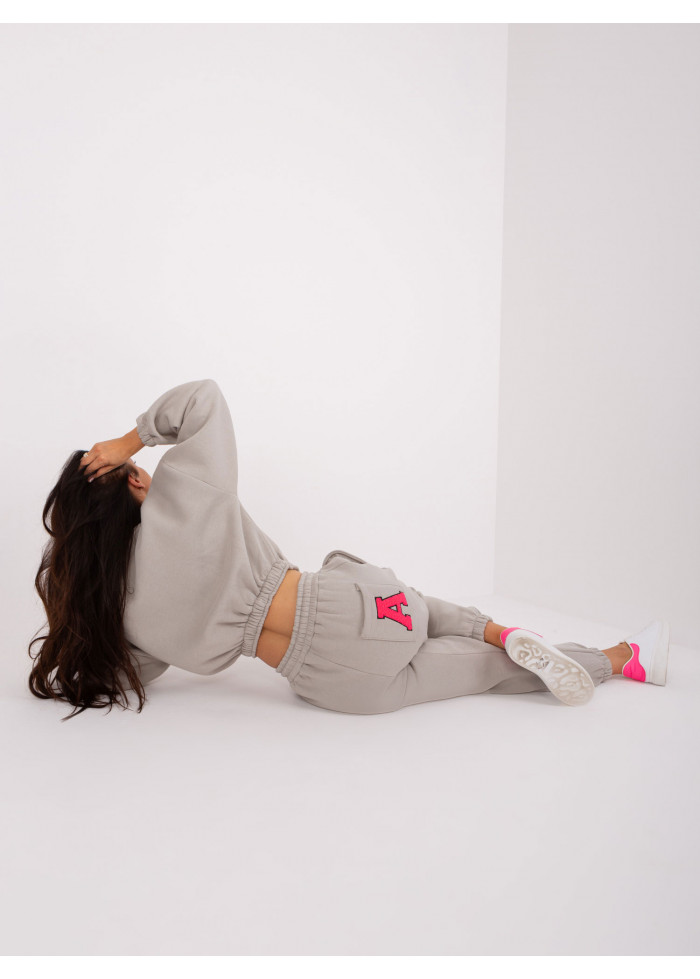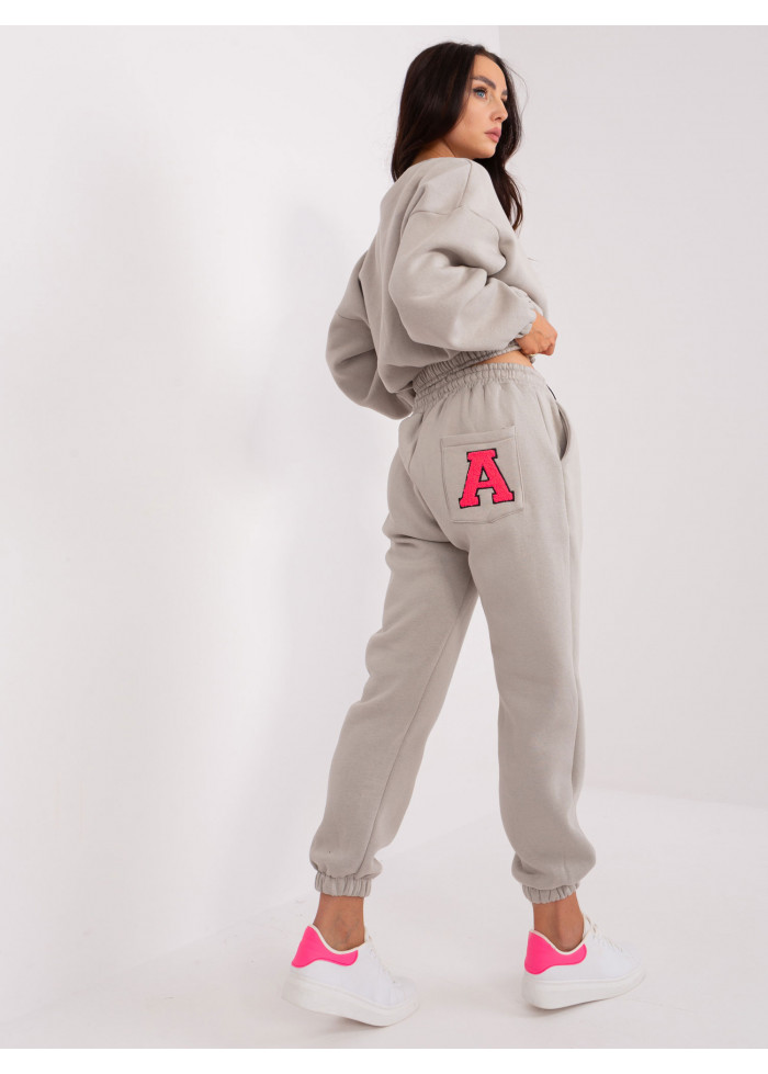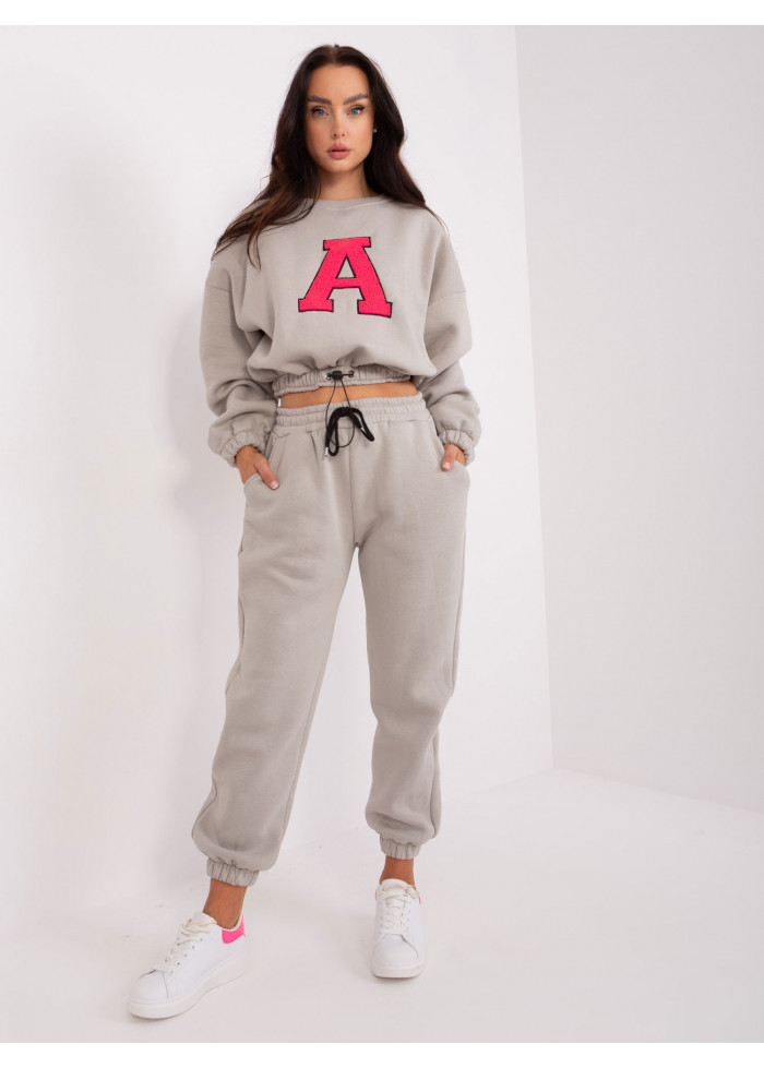 Dámska tepláková súprava, mikina v štýle crop top, ozdobná guma v páse, sťahujúca gumička v spodnej časti, sťahujúca guma na rukávoch, ozdobný nápis, dlhé nohavice na gumu v páse, sťahovacia šnúrka v páse, 2 vrecká, 1 vrecko vzadu, guma na spodku nohavíc, univerzálna veľkosť, šírka pod plecami: 58 cm, dĺžka rukáva: 60 cm, celková dĺžka: 50 cm, šírka nohavíc v páse: 38 cm, výška sedu: 29 cm, dĺžka nohavíc: 93 cm.