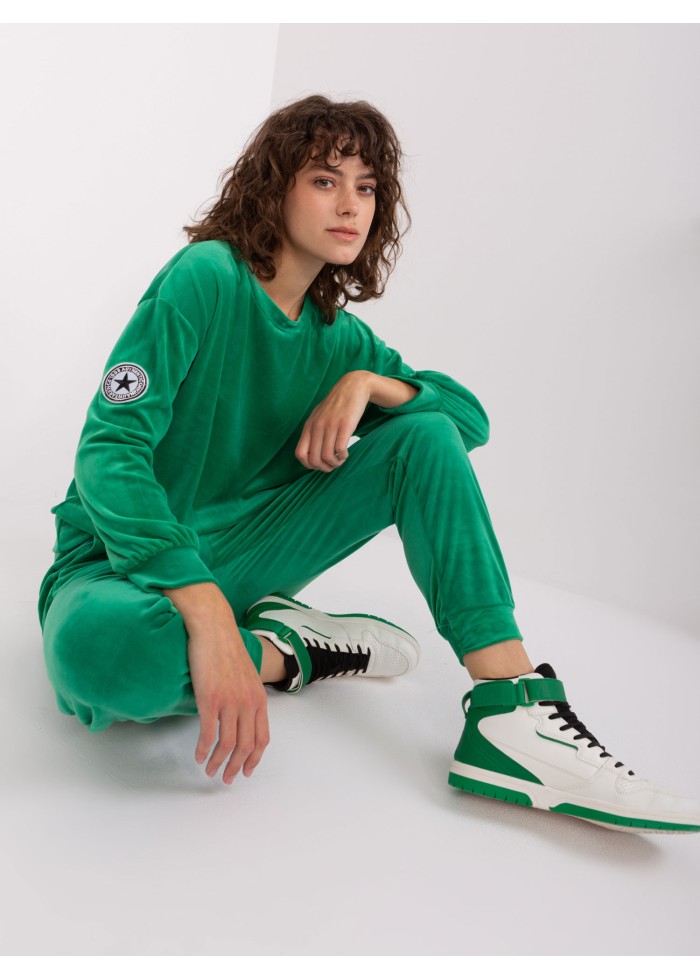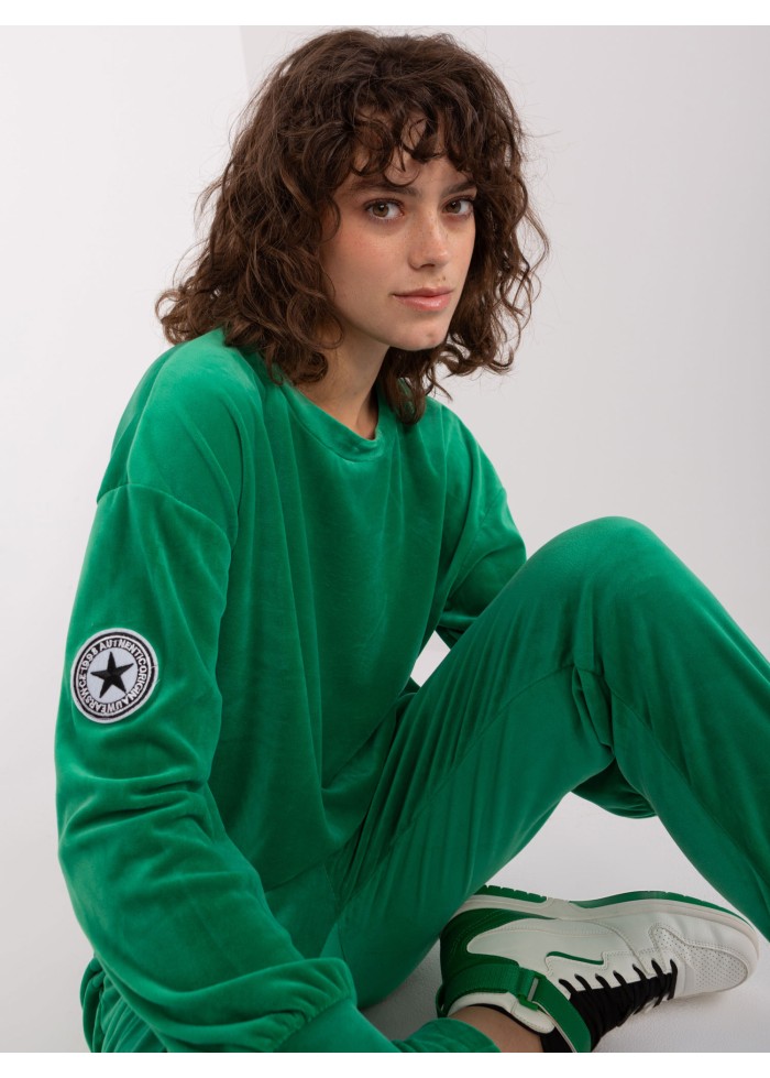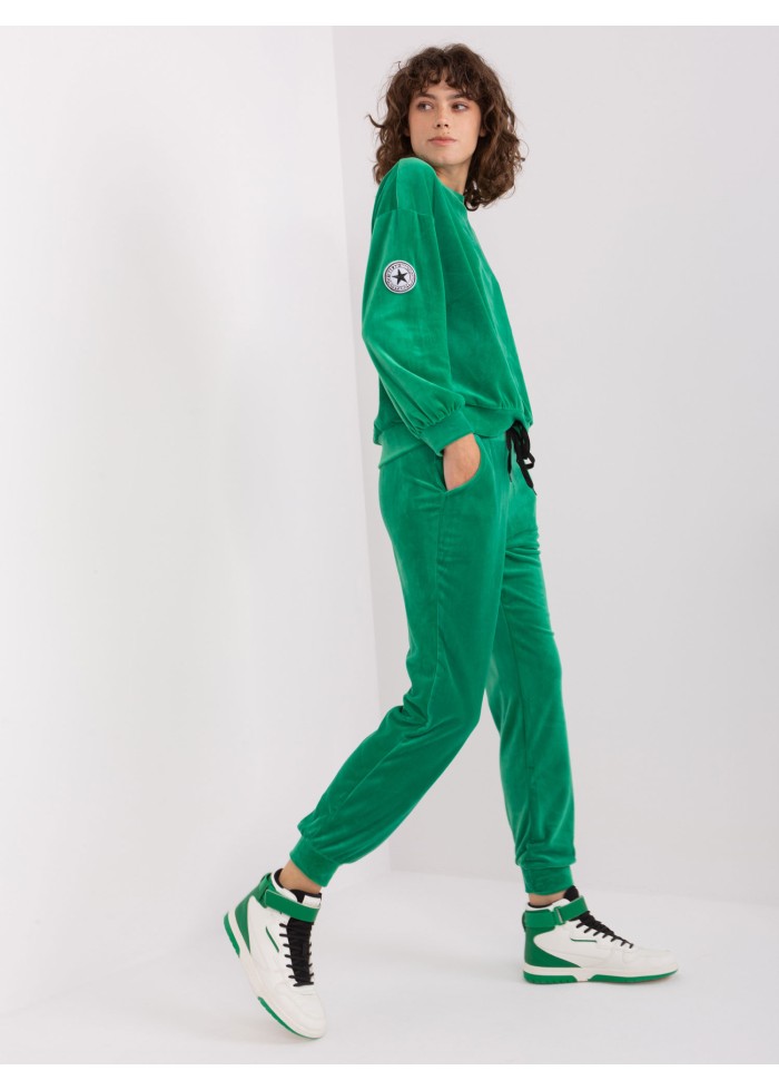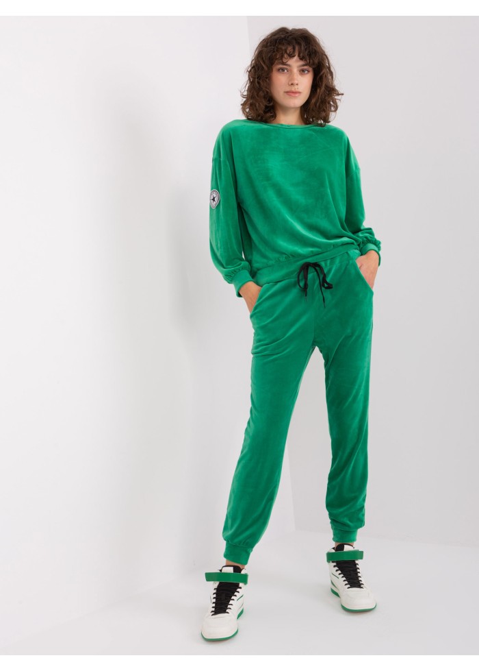 Velúrová tepláková súprava, mikina, okrúhly výstrih, lémy na koncoch rukávov a v spodnej časti, ozdobná nášivka, dlhé nohavice na gumu v páse, ozdobná šnúrka v páse, 2 vrecká, lémy na spodku nohavíc, univerzálna veľkosť, miery modelky: výška: 178 cm, prsia: 80 cm, pás: 58 cm, boky: 88 cm, rozmer produktu meraného na plocho:, šírka pod plecami: 56 cm, dĺžka rukáva: 56 cm, celková dĺžka: 58 cm, šírka nohavíc v páse: 38 cm, dĺžka nohavíc: 96 cm.
