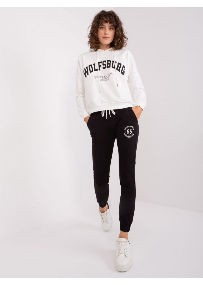 Dámska tepláková súprava, basic mikina s kapucňou, ozdobné šnúrky na kapucni, ozdobný nápis, jemné sťahujúce lémy na koncoch rukávov a v spodnej časti, dlhé nohavice na gumu v páse, ozdobná šnúrka v páse, 2 vrecká, ozdobná potlač, guma na spodku nohavíc, modelka má na sebe veľkosť s/m, miery modelky: výška: 177 cm, prsia: 84 cm, pás: 62 cm, boky: 89 cm, rozmer produktu meraného na plocho, vo veľkosti s/m:, šírka pod plecami: 57 cm, dĺžka rukáva: 58 cm, celková dĺžka: 57 cm, šírka nohavíc v páse: 37 cm, výška sedu: 26 cm, dĺžka nohavíc: 96 cm.