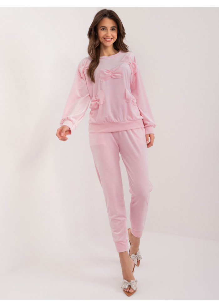Dámska tepláková súprava, dámska velúrová súprava, basic mikina, okrúhly výstrih, jemné sťahujúce lémy na koncoch rukávov a v spodnej časti, ozdobné aplikácie, dlhé nohavice na gumu v páse, ozdobná šnúrka v páse, 2 vrecká, univerzálna veľkosť, miery modelky: výška: 172 cm, prsia: 88 cm, pás: 63 cm, boky: 92 cm, rozmer produktu meraného na plocho:, šírka pod plecami: 55 cm, dĺžka rukáva: 54 cm, celková dĺžka: 62 cm, šírka nohavíc v páse: 37 cm, výška sedu: 31 cm, dĺžka nohavíc: 94 cm.