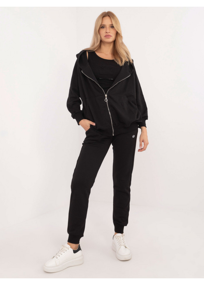 Štýlová dámska tepláková súprava, tepláková súprava 3-kombinácia, jednofarebná dámska mikina na zips, dámska bavlnená mikina s kapucňou, 2 vrecká v prednej časti, rebrovaný lém na rukávoch a v spodnej časti, ozdobná potlač, dámsky top bez rukávov, ozdobná potlač vpredu, dámske basic tepláky, jemne elastická guma v páse, 2 bočné vrecká, modelka má na sebe univerzálnu veľkosť, miery modelky: výška 175 cm, prsia 90 cm, pás 66 cm, boky 94 cm, rozmer produktu meraného na plocho:, šírka mikiny pod pazuchou - 69 cm, dĺžka rukáva - 60 cm, dĺžka mikiny - 67 cm, šírka topu pod pazuchami - 38 cm, dĺžka zvršku - 45 cm, šírka nohavíc v páse - 31 cm, výška pása - 32 cm (plochý), šírka pása - 44 cm (po natiahnutí), dĺžka nohavíc - 104 cm..