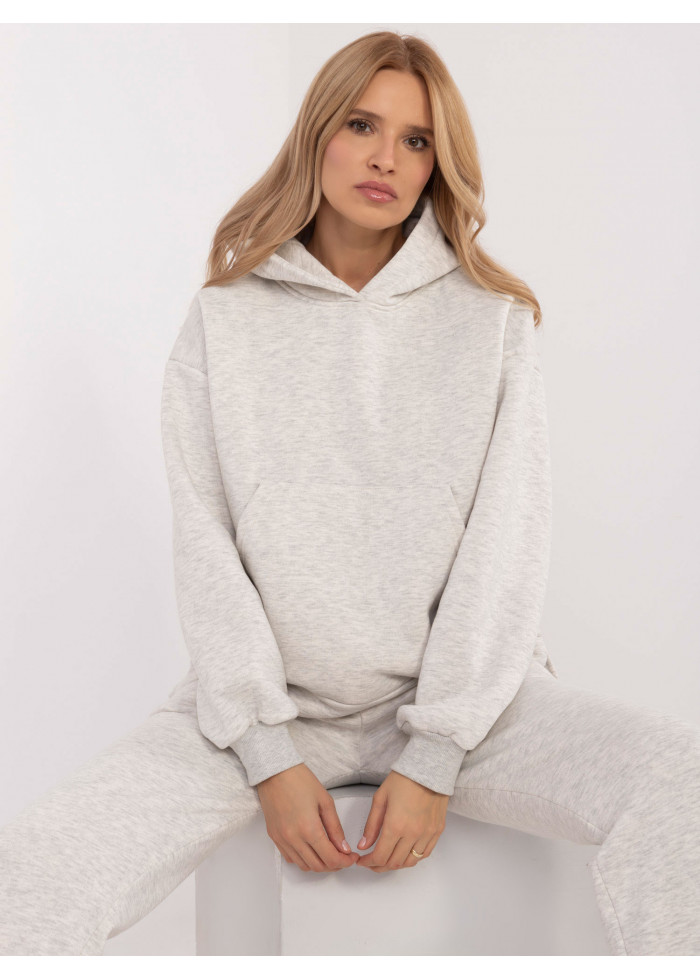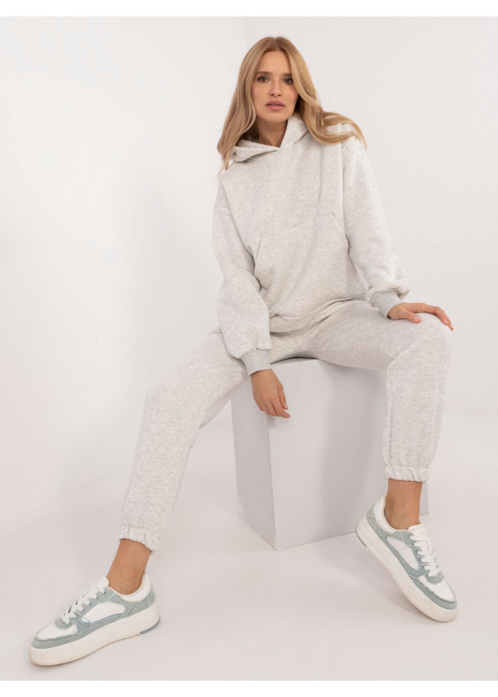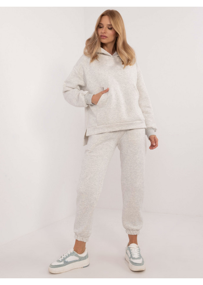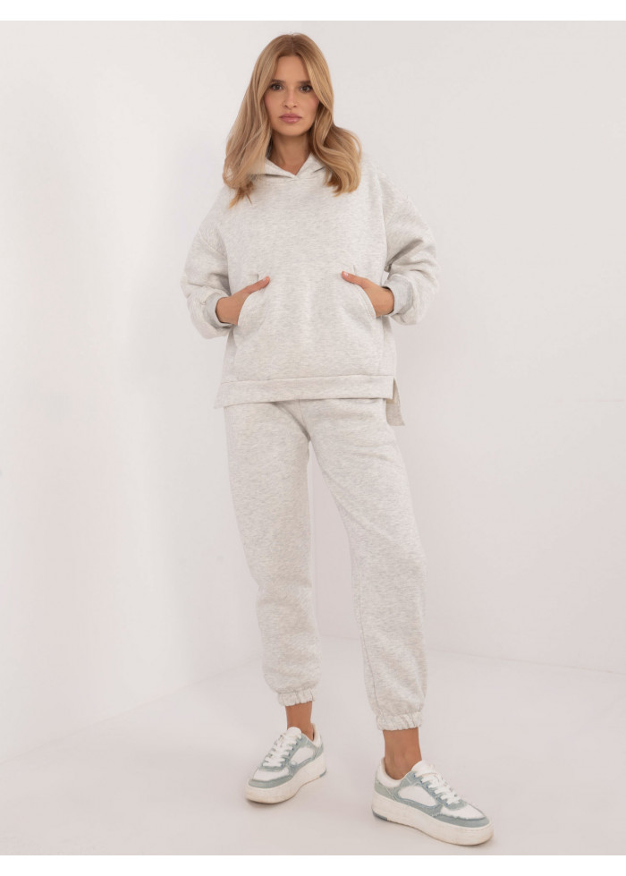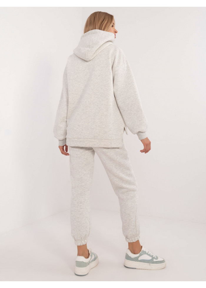 Dámska tepláková súprava, asymetrická mikina s kapucňou, pohodlný voľný strih, 1 vrecko v prednej časti, rozparky na bokoch, vzadu mierne predĺžená, basic tepláky, sťahujúca guma s viazaním v páse, sťahujúca gumička v spodnej časti, modelka má na sebe univerzálnu veľkosť, miery modelky: výška 175 cm, prsia 90 cm, pás 66 cm, boky 94 cm, rozmer produktu meraného na plocho:, šírka mikiny pod pazuchou - 65 cm, dĺžka mikiny - 74 cm, dĺžka rukáva - 64 cm, šírka nohavíc v páse - 34 cm, dĺžka nohavíc - 94 cm.