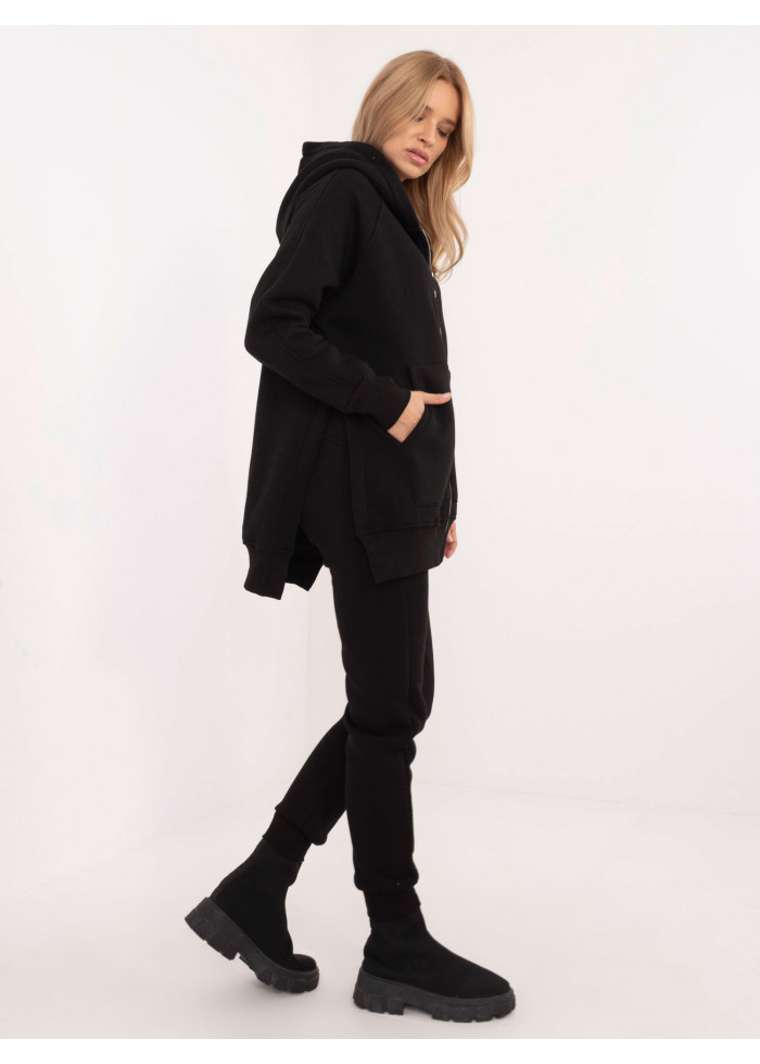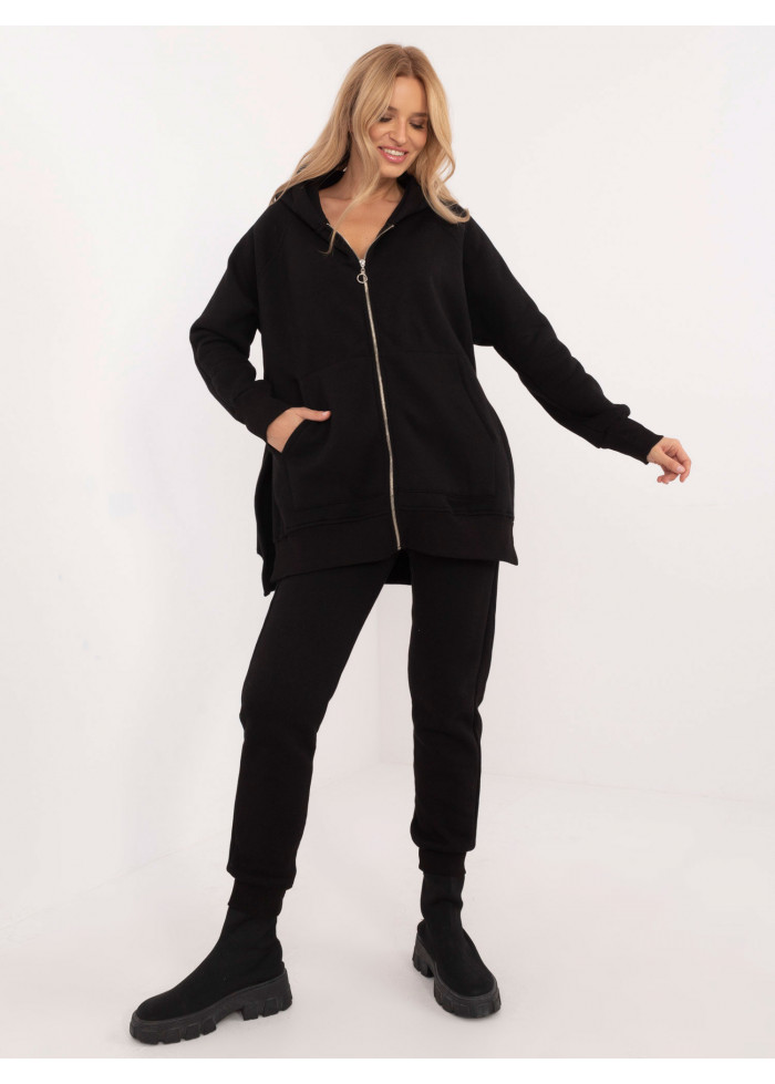 Dámska tepláková súprava, dámska mikina s kapucňou, asymetrická dámska mikina na zips, dlhé rukávy s lémom, 2 vrecká vpredu, veľké rozparky po bokoch, vzadu mierne predĺžená, dámske basic tepláky, elastická guma v páse, dve vrecká, lém v spodnej časti, modelka má na sebe univerzálnu veľkosť, miery modelky: výška 175 cm, prsia 90 cm, pás 66 cm, boky 94 cm, rozmer produktu meraného na plocho:, šírka v podpazuší - 62 cm, dĺžka mikiny - 77 cm, dĺžka rukáva - 63 cm, šírka v páse nohavíc - 32 cm (naplocho), šírka v páse - 44 cm (naplocho natiahnuté), dĺžka nohavíc - 99 cm.