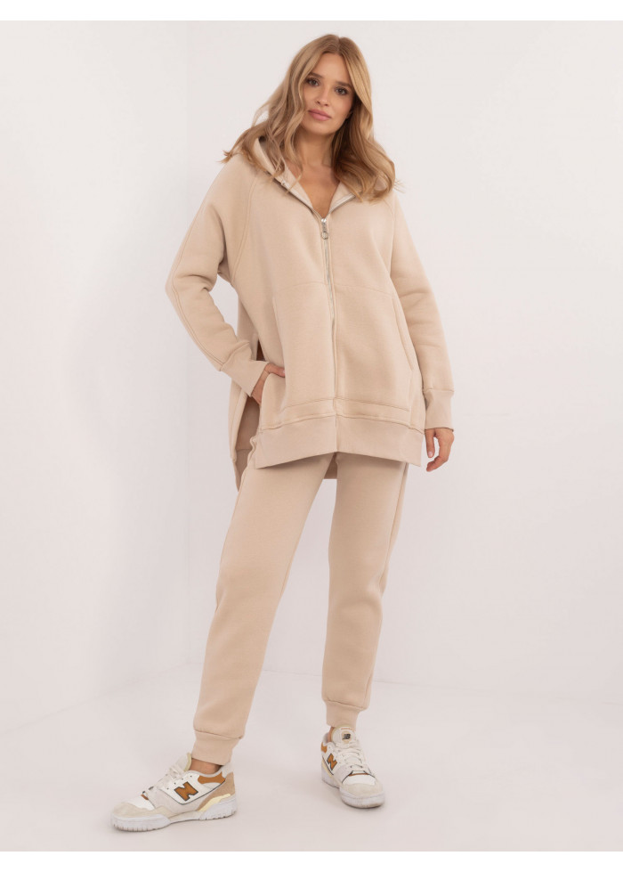 Zateplená tepláková súprava, dámska mikina s kapucňou, asymetrická dámska mikina na zips, 2 vrecká vpredu, vzadu mierne predĺžená, po bokoch veľké rozparky, dámske basic tepláky, elastická guma v páse, 2 bočné vrecká, lém v spodnej časti, modelka má na sebe univerzálnu veľkosť, miery modelky: výška 175 cm, prsia 90 cm, pás 66 cm, boky 94 cm, rozmer produktu meraného na plocho:, šírka v podpazuší - 62 cm, dĺžka mikiny - 77 cm, dĺžka rukáva - 63 cm, šírka v páse nohavíc - 32 cm (naplocho), šírka v páse - 44 cm (naplocho natiahnuté), dĺžka nohavíc - 99 cm.