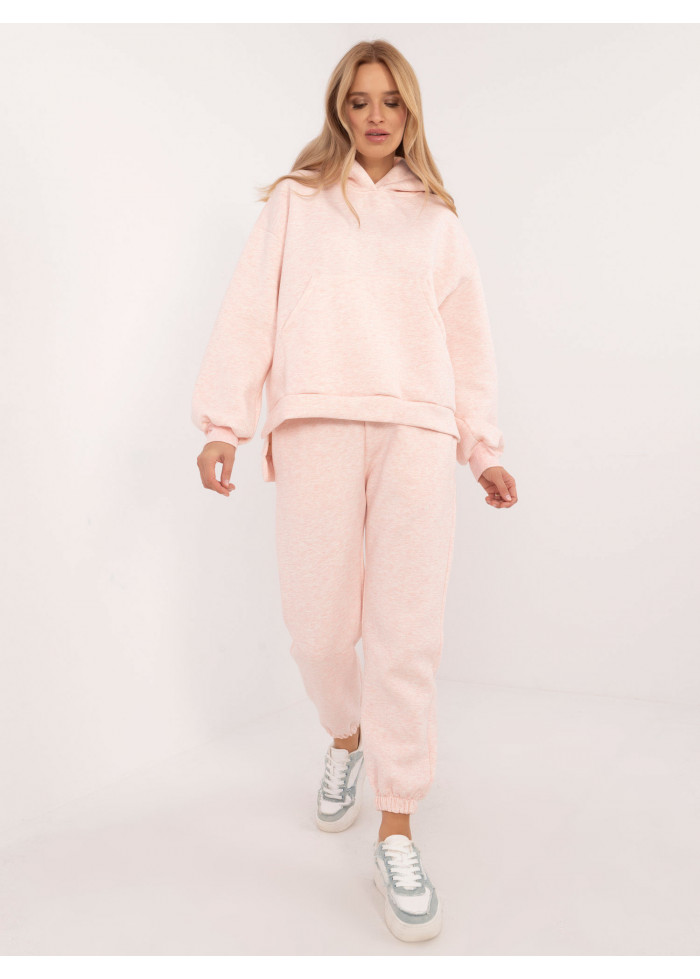 Dámska tepláková súprava, asymetrická mikina s kapucňou, pohodlný voľný strih, 1 vrecko v prednej časti, malé rozparky na bokoch, vzadu mierne predĺžená, basic tepláky, sťahujúca guma s viazaním v páse, sťahujúca gumička v spodnej časti, modelka má na sebe univerzálnu veľkosť, miery modelky: výška 175 cm, prsia 90 cm, pás 66 cm, boky 94 cm, rozmer produktu meraného na plocho:, šírka mikiny pod pazuchou - 65 cm, dĺžka mikiny - 74 cm, dĺžka rukáva - 64 cm, šírka nohavíc v páse - 34 cm, dĺžka nohavíc - 94 cm.