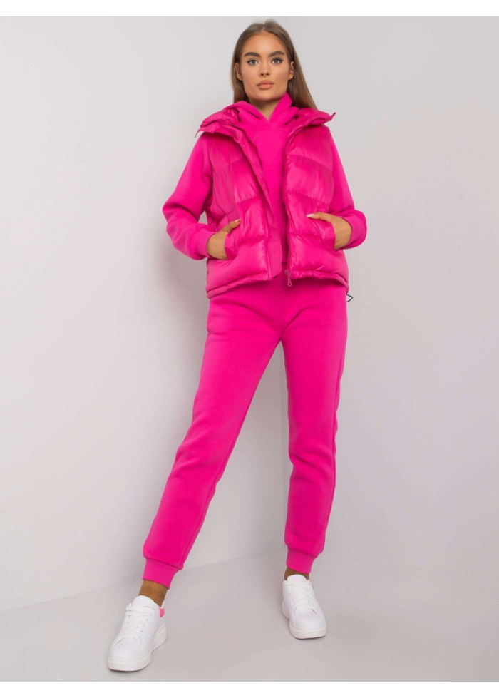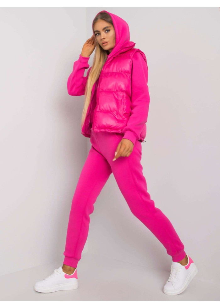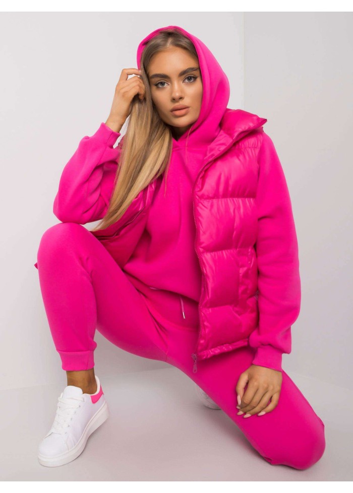 Dámsky športový komplet, dámska tepláková súprava, prešívaná vesta, mikina s dlhým rukávom, stojačikový golier, lémy na koncoch rukávov a v spodnej časti, dlhé nohavice, lémy na spodku nohavíc, sťahujúca guma a šnúrka v páse, 2 bočné vrecká, možnosť stiahnutia šnúrkou, spôsob prania: pranie v práčke na 30°c, tepláková súprava, materiál: 70% bavlna, 30% polyester, vesta, materiál: 100% polyester, modelka má na sebe veľkosť s/m. miery modelky: výška 174 cm, prsia 83 cm, pás 62 cm, boky 96 cm., rozmery súpravy vo veľkosti s/m merané naplocho: šírka bundy pod pazuchami - 53 cm, dĺžka rukáva - 65 cm, dĺžka bundy - 51 cm, šírka nohavíc v páse - 36 cm , dĺžka nohavíc - 94 cm, šírka vesty pod pazuchami - 57 cm, dĺžka vesty - 57 cm.