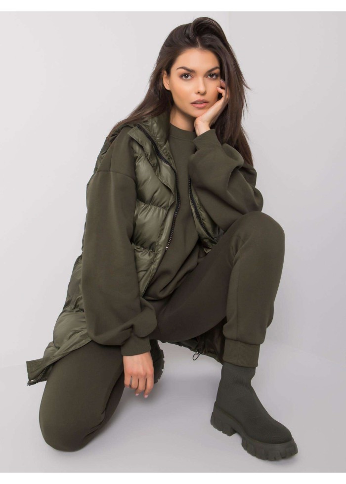 Dámsky športový komplet, dámska tepláková súprava, dlhšia prešívaná vesta, mikina s dlhým rukávom, stojačikový golier, oversize strih, lémy na koncoch rukávov a v spodnej časti, rozšírené rukávy ukončené lémom, dlhé nohavice, lémy na spodku nohavíc, sťahujúca guma a šnúrka v páse, 2 bočné vrecká, spôsob prania: pranie v práčke na 30°c, tepláková súprava, materiál: 70% bavlna, 30% polyester, vesta, materiál: 100% polyester, modelka má na sebe veľkosť s/m, miery modelky: výška: 173 cm, prsia: 83 cm, pás: 60 cm, boky: 90 cm, rozmer produktu meraného na plocho, vo veľkosti s/m:, šírka pod plecami: 63 cm, celková dĺžka mikiny: 58 cm, dĺžka rukávov: 70 cm, šírka nohavíc v páse: 36 cm, dĺžka nohavíc: 96 cm, šírka vesty pod plecami: 59 cm, dĺžka vesty: 82 cm.