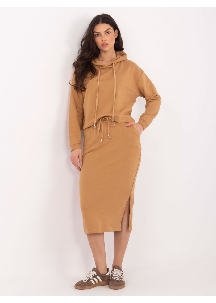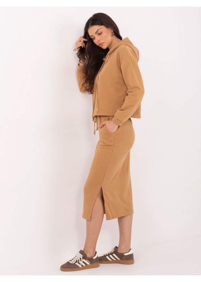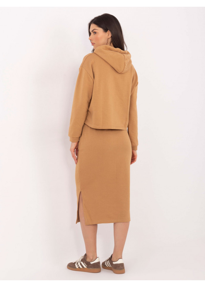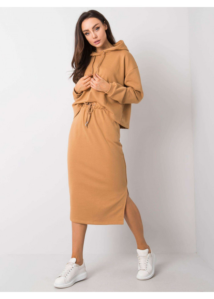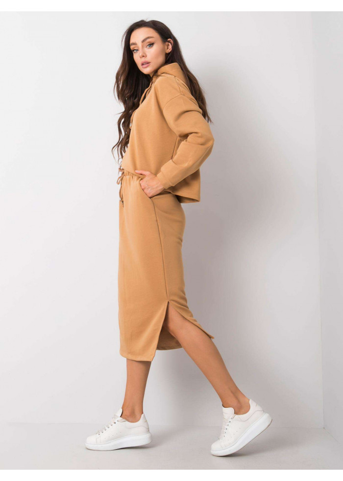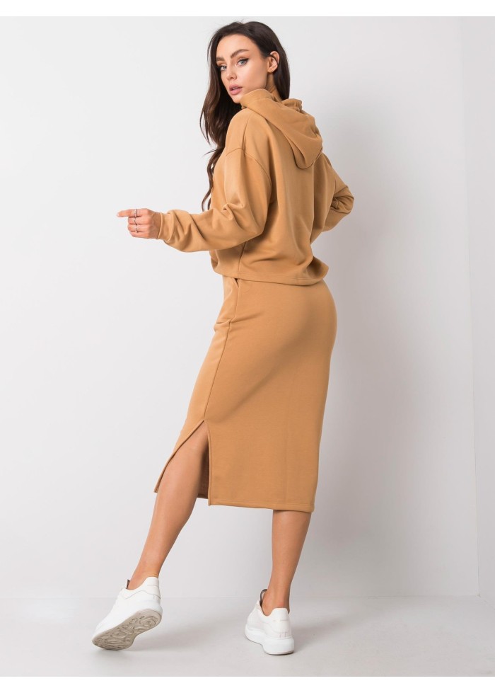 Karamelovo hnedá teplákova súprava so sukňou