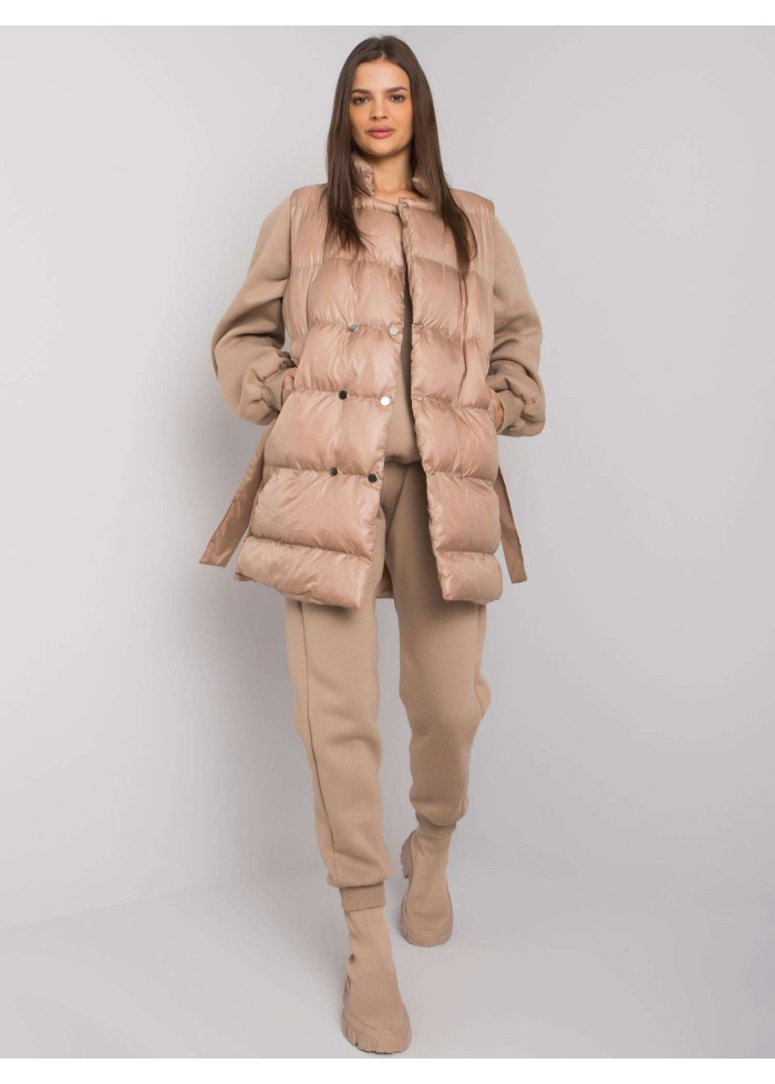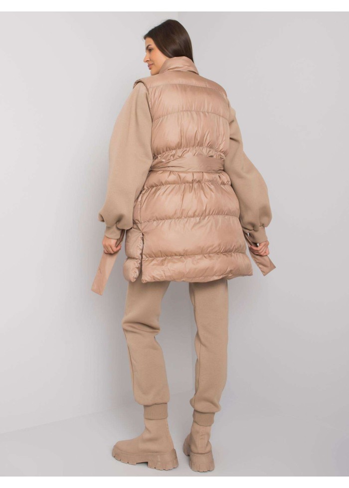 Prešívaná vesta s opaskom a golierom