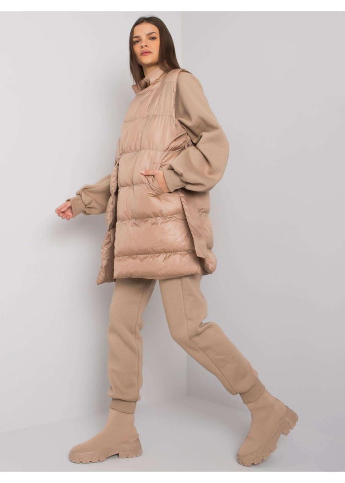 Teplákový komplet, prešívaná vesta s opaskom a golierom, zapínanie na patenty, 2 vrecká, mikina, okrúhly výstrih, lémy na koncoch rukávov a v spodnej časti, dlhé nohavice na gumu v páse, lémy na spodku nohavíc, 2 vrecká na bokoch, materiál vesty: 100% polyester, materiál: 70% bavlna, 30% polyester, spôsob prania: pranie v práčke na 30°c, modelka má na sebe veľkosť s/m, miery modelky: výška: 178 cm, prsia: 82 cm, pás: 61 cm, boky: 88 cm, rozmer produktu meraného na plocho, vo veľkosti s/m:, šírka pod plecami: 65 cm, dĺžka rukáva: 68 cm, celková dĺžka: 69 cm, šírka nohavíc v páse: 37 cm, dĺžka nohavíc: 99 cm, šírka vesty pod plecami: 57 cm, dĺžka vesty: 84 cm.
