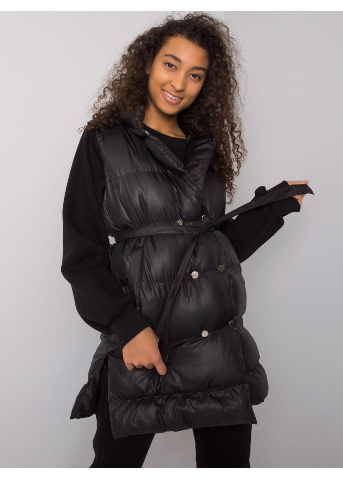Prešívaná vesta s opaskom a golierom