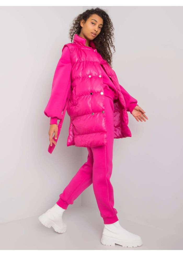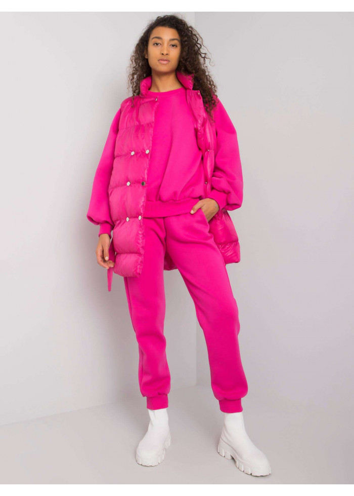 Teplákový komplet, prešívaná vesta s opaskom a golierom, zapínanie na patenty, 2 vrecká, mikina, okrúhly výstrih, lémy na koncoch rukávov a v spodnej časti, dlhé nohavice na gumu v páse, lémy na spodku nohavíc, 2 vrecká na bokoch, materiál vesty: 100% polyester, materiál: 70% bavlna, 30% polyester, spôsob prania: pranie v práčke na 30°c, modelka má na sebe veľkosť s/m, miery modelky: výška: 178 cm, prsia: 82 cm, pás: 61 cm, boky: 88 cm, rozmer produktu meraného na plocho, vo veľkosti s/m:, šírka pod plecami: 65 cm, dĺžka rukáva: 68 cm, celková dĺžka: 69 cm, šírka nohavíc v páse: 37 cm, dĺžka nohavíc: 99 cm, šírka vesty pod plecami: 57 cm, dĺžka vesty: 84 cm.