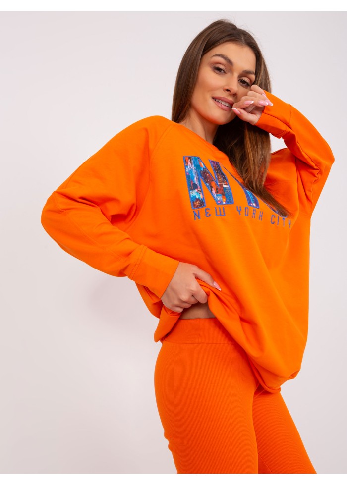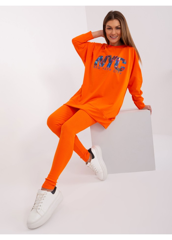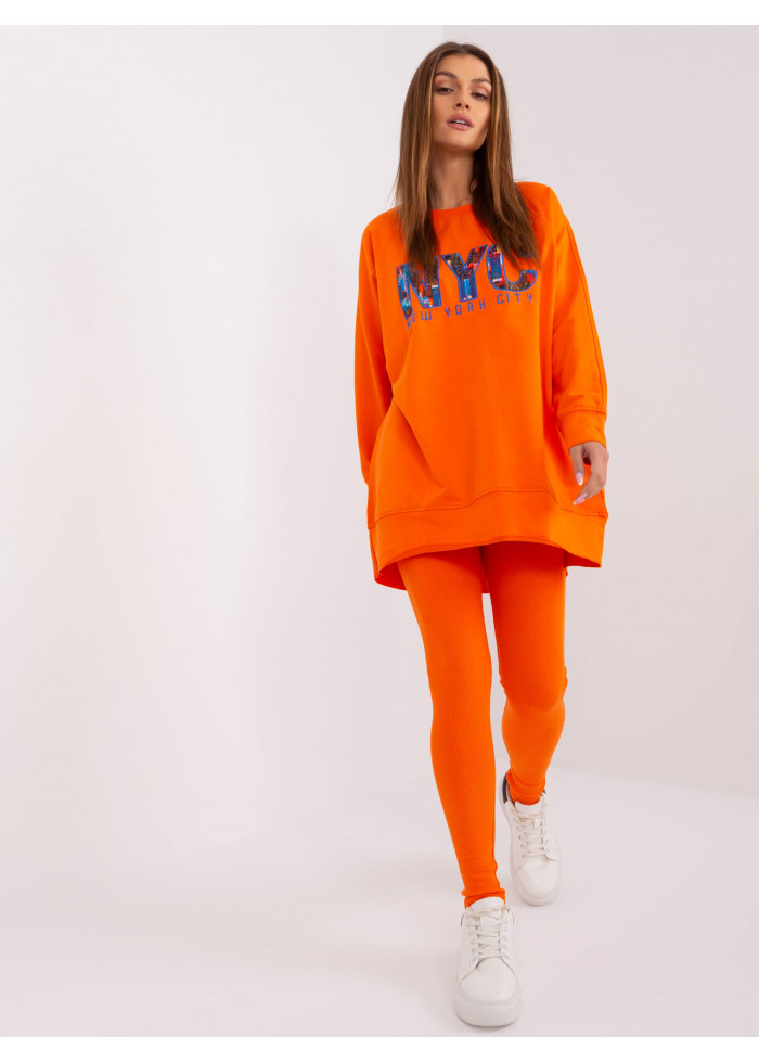 Teplákový komplet, dámska predĺžená mikina, okrúhly výstrih, ozdobný nápis, lémy na koncoch rukávov a v spodnej časti, voľnejší strih, dámske legíny, jemný rebrovaný úplet, univerzálna veľkosť, miery modelky: výška 170 cm, prsia 93 cm, pás 66 cm, boky 93 cm., rozmer produktu meraného na plocho:, šírka pod plecami: 68 cm, dĺžka rukáva: 58 cm, celková dĺžka: 80 cm, šírka nohavíc v páse: 32 cm, výška sedu: 28 cm, dĺžka nohavíc: 98 cm.