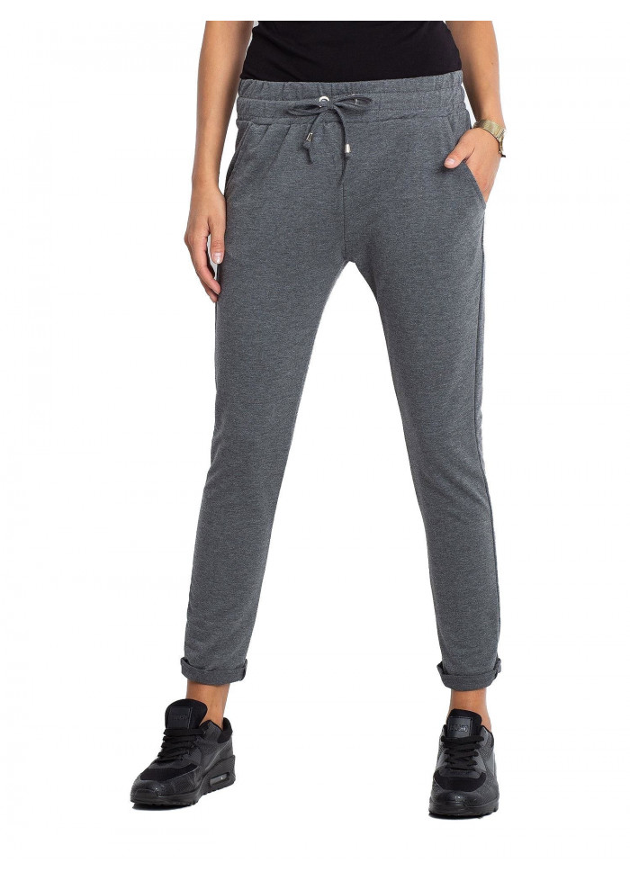 Dámske bavlnené tepláky, úzky strih, sťahovacia šnúrka a široká guma v páse, 2 bočné vrecká, materiál: 90% bavlna, 10% elastan, spôsob prania: pranie v práčke na 30°c, modelka má na sebe veľkosť s. rozmery modelky: výška 176 cm, prsia 85 cm, pás 64 cm, boky 92 cm., rozmery vo veľkosti s merané naplocho: šírka v páse - 34 cm, celková dĺžka - 95 cm.