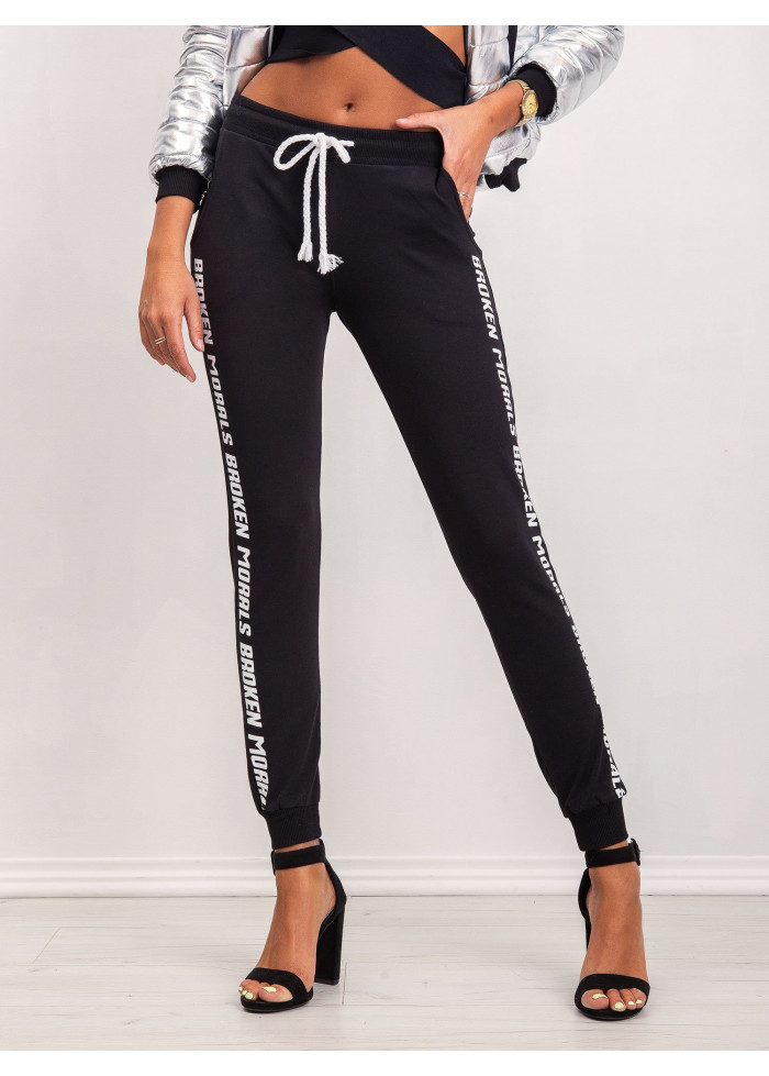 Dámske bavlnené tepláky, úzky strih, široká guma v páse, sťahovacia šnúrka v páse, lémy na spodku nohavíc, 2 bočné vrecká, potlač po dĺžke nohavíc, materiál: 90% bavlna, 10% elastan, spôsob prania: pranie v práčke na 30°c, modelka má na sebe veľkosť s. rozmery modelky: výška 176 cm, prsia 85 cm, pás 64 cm, boky 92 cm..