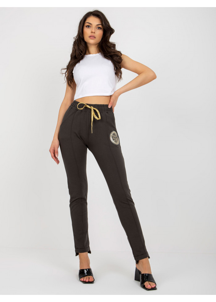 Dámske tepláky, ozdobná široká guma so šnúrkou, 2 vrecká, ozdobné prešívanie, ozdobná potlač, asymetrický strih na spodku nohavíc, modelka má na sebe veľkosť s, miery modelky: výška: 173 cm, prsia: 85 cm, pás: 62 cm, boky: 95 cm, rozmer produktu meraného na plocho, vo veľkosti s:, šírka nohavíc v páse: 34 cm, výška sedu: 29 cm, celková dĺžka: 95 cm.