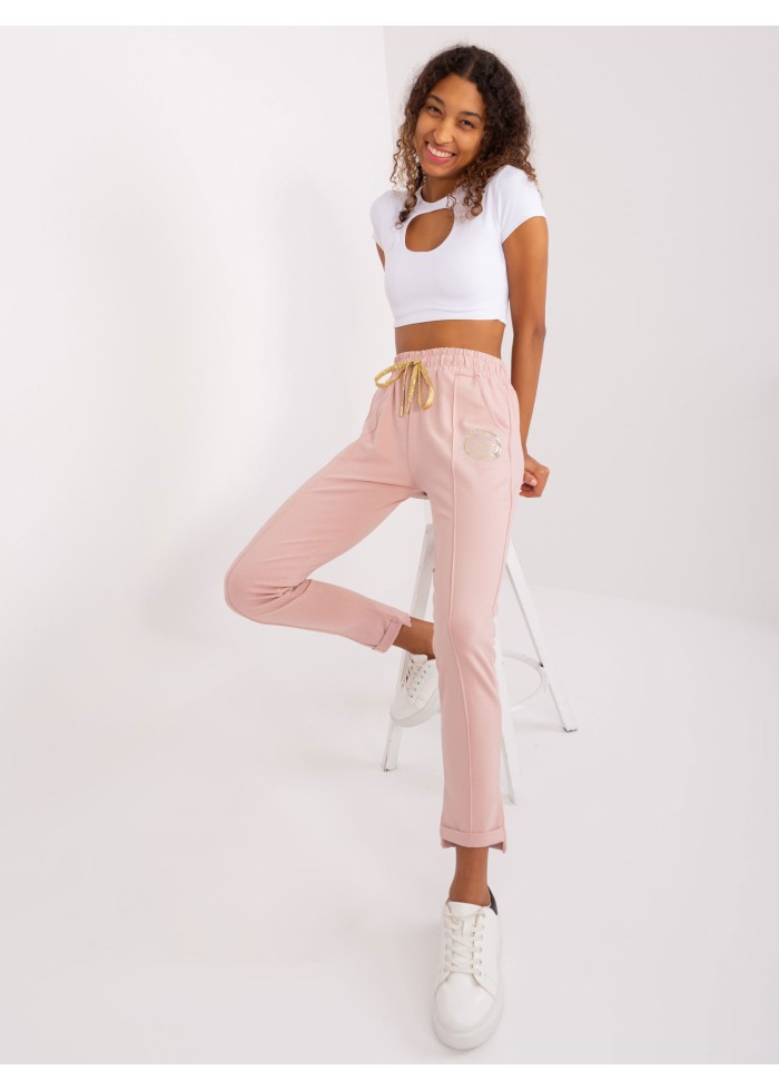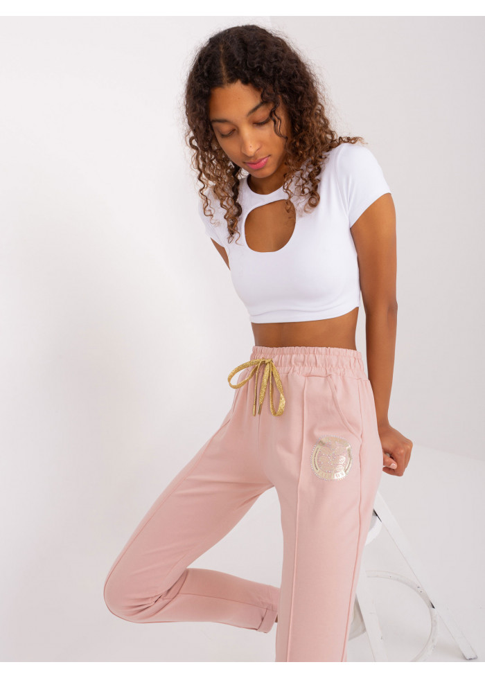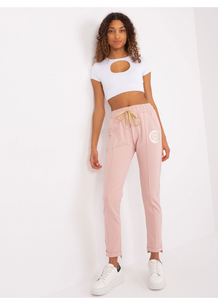Dámske tepláky, ozdobná široká guma so šnúrkou, 2 vrecká, ozdobné prešívanie, ozdobná potlač, asymetrický strih na spodku nohavíc, modelka má na sebe veľkosť s, miery modelky: výška: 173 cm, prsia: 85 cm, pás: 62 cm, boky: 95 cm, rozmer produktu meraného na plocho, vo veľkosti s:, šírka nohavíc v páse: 34 cm, výška sedu: 29 cm, celková dĺžka: 95 cm.