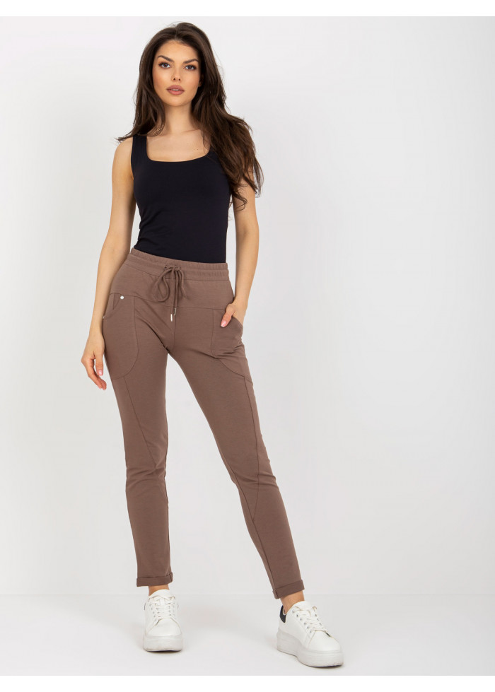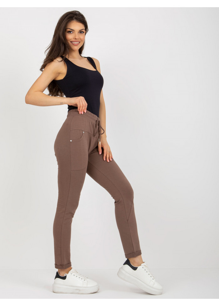 Dámske tepláky, sťahovacia šnúrka a široká guma v páse, 2 vrecká, lémy na spodku nohavíc, modelka má na sebe veľkosť s/m, miery modelky: výška: 173 cm, prsia: 85 cm, pás: 62 cm, boky: 95 cm, rozmer produktu meraného na plocho, vo veľkosti s/m:, šírka nohavíc v páse: 36 cm, výška sedu: 26 cm, celková dĺžka: 92 cm.