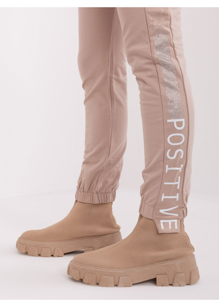 Dámske tepláky, ozdobné lampasy, ozdobný nápis, sťahujúca guma a šnúrka v páse, 2 vrecká, sťahujúca guma na spodku nohavíc, modelka má na sebe veľkosť s, miery modelky: výška 171 cm, prsia 84 cm, pás 60 cm, boky 88 cm., rozmer produktu meraného na plocho, vo veľkosti s:, šírka nohavíc v páse: 34 cm, výška sedu: 28 cm, dĺžka nohavíc: 90 cm.