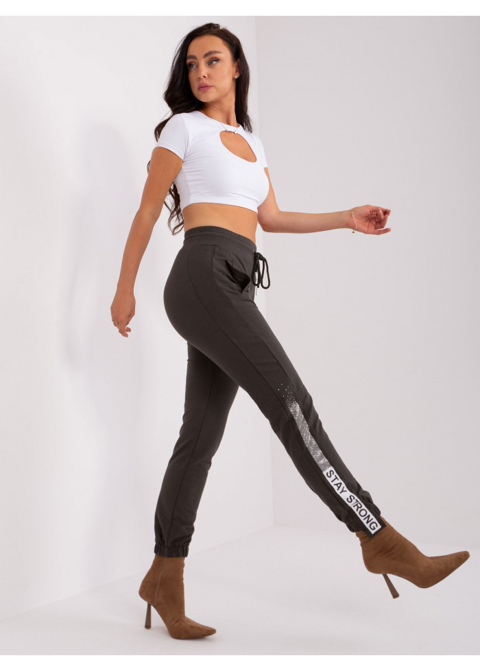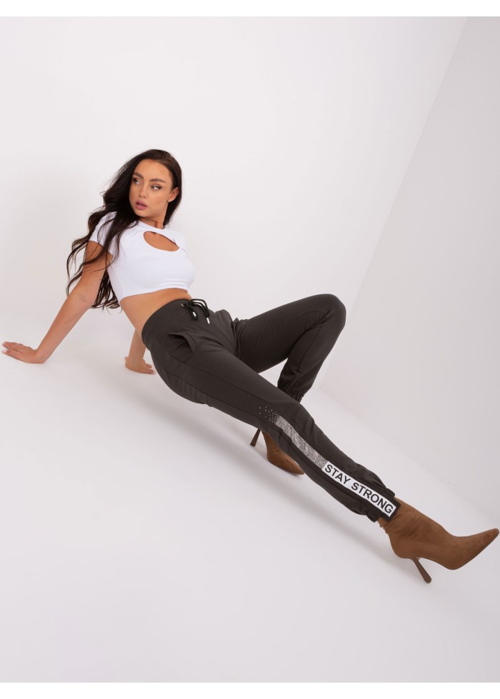 Dámske tepláky, ozdobné lampasy, ozdobný nápis, sťahujúca guma a šnúrka v páse, 2 vrecká, sťahujúca guma na spodku nohavíc, modelka má na sebe veľkosť s, miery modelky: výška 171 cm, prsia 84 cm, pás 60 cm, boky 88 cm., rozmer produktu meraného na plocho, vo veľkosti s:, šírka nohavíc v páse: 34 cm, výška sedu: 28 cm, dĺžka nohavíc: 90 cm.