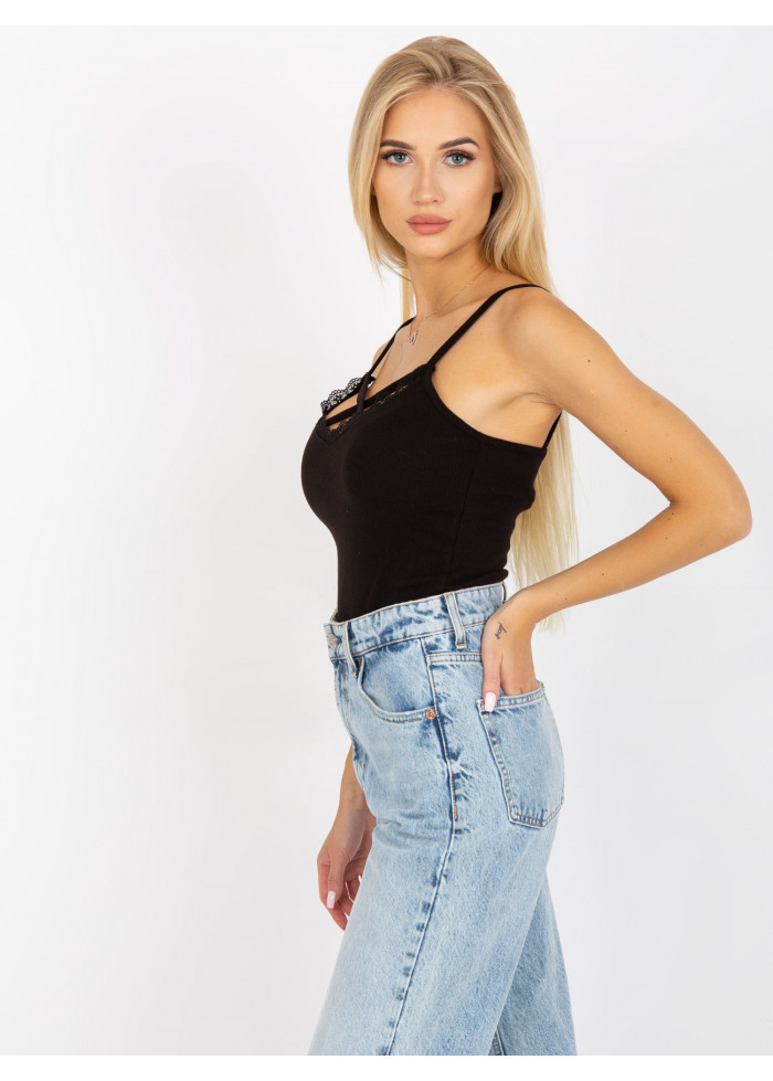 Dámsky top na ramienka, výrazný výstrih, ozdobná čipka, rebrovaný úplet, spôsob prania: pranie v práčke na 30°c, materiál: 95% bavlna, 5% elastan, modelka má na sebe veľkosť s, miery modelky: výška 175 cm, prsia 84 cm, pás 62 cm, boky 93 cm., rozmer produktu meraného na plocho, vo veľkosti s:, šírka pod plecami: 34 cm, celková dĺžka: 63 cm.