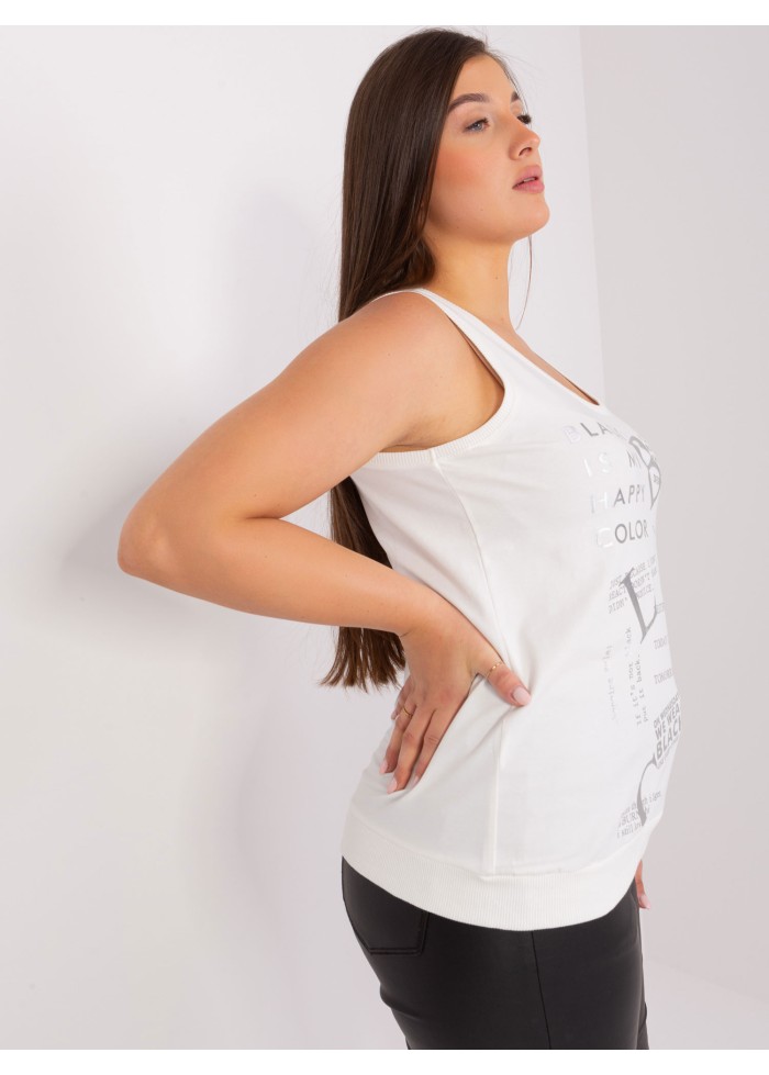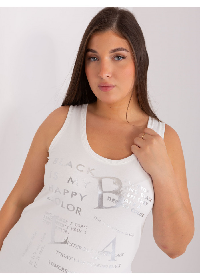 Bavlnený top, hlbší okrúhly výstrih, ozdobná potlač, lém na spodnej časti, univerzálna veľkosť, miery modelky: výška 172 cm, prsia 103 cm, pás 73 cm, boky 103 cm., rozmer produktu meraného na plocho:, šírka pod plecami: 47 cm, celková dĺžka: 64 cm.