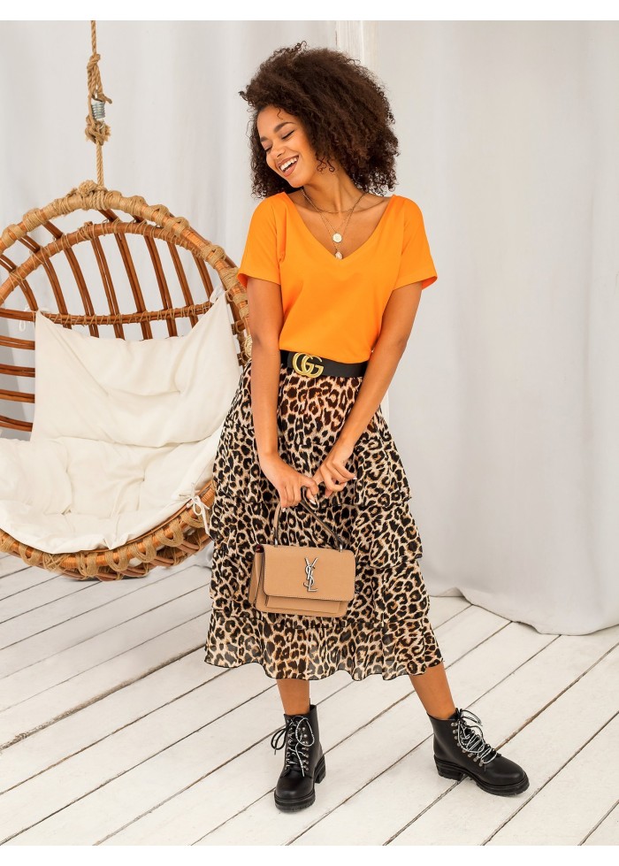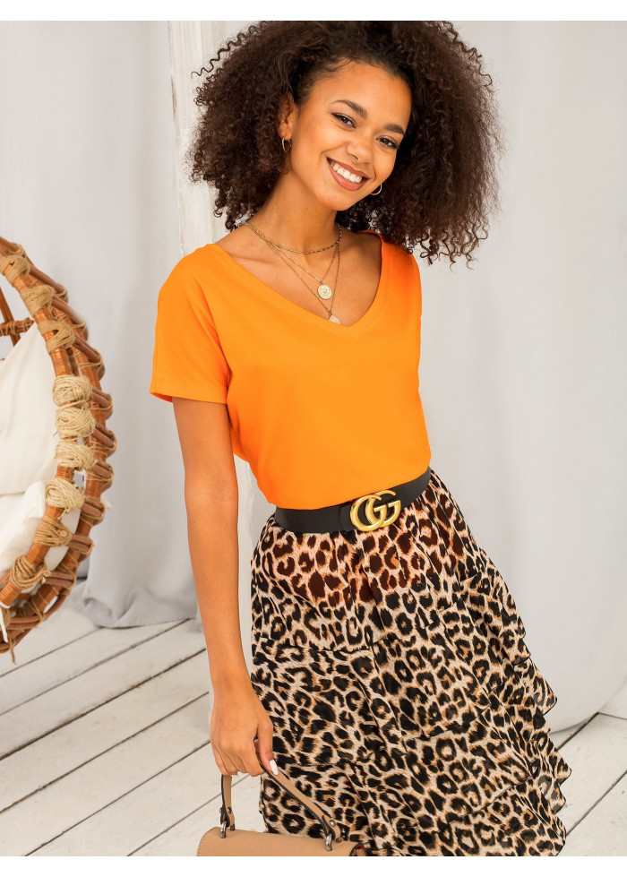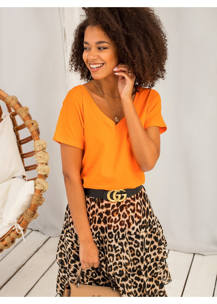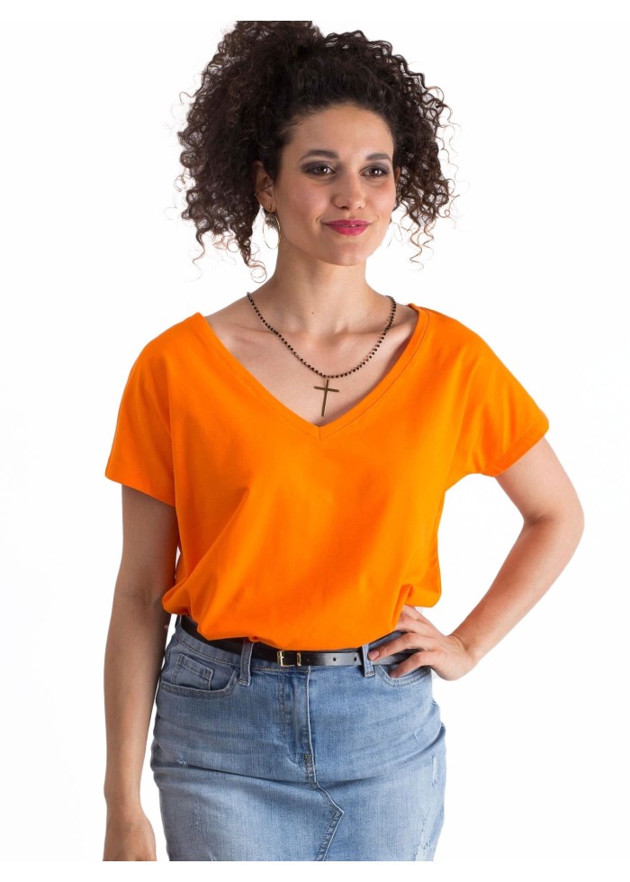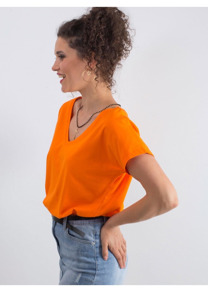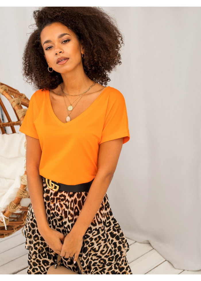 Bavlnené tričko, výstrih do v, krátky rukáv, jednoduchý voľnejší strih, spôsob prania: pranie v práčke na 30°c, materiál: 90% bavlna, 10% elastan, modelka má na sebe veľkosť s, miery modelky: výška: 172 cm, prsia: 87 cm, pás: 60 cm, boky: 91 cm.