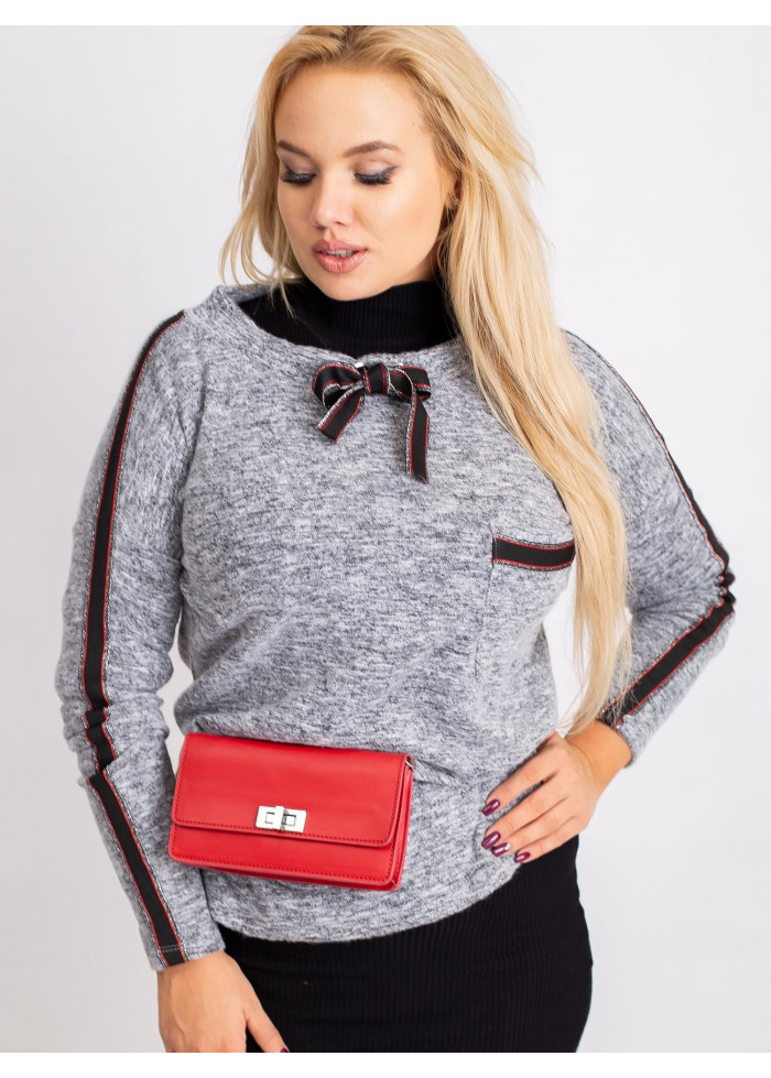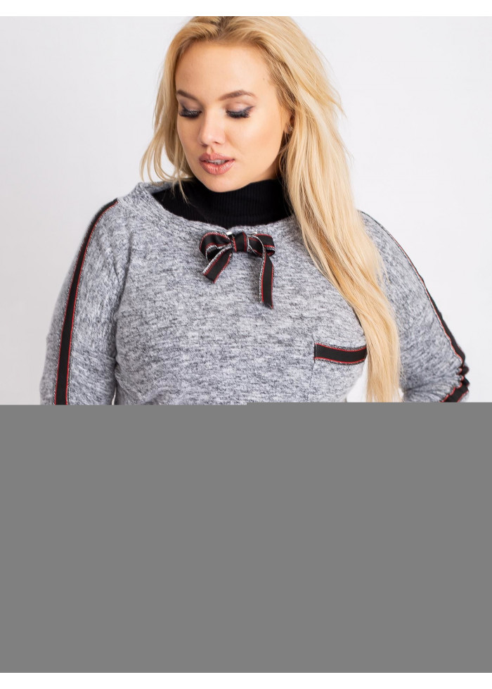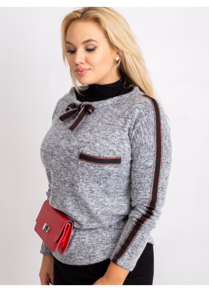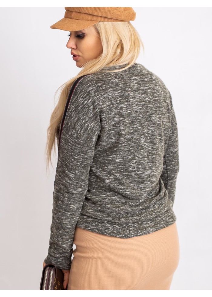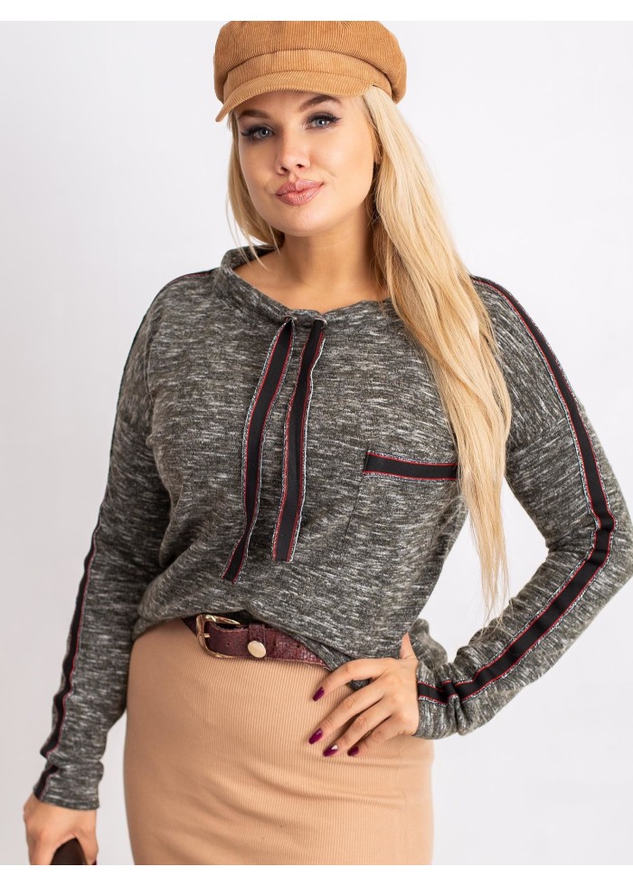 Dámske tričko s dlhým rukávom, mäkký a príjemný melírovaný materiál, ozdobné aplikácie, ozdobné šnúrky na golieri, plus size strih, spôsob prania: pranie v práčke na 30°c, materiál: 90% bavlna, 10% elastan, univerzálna veľkosť, miery modelky: výška: 172 cm, prsia: 105 cm, pás: 76 cm, boky: 105 cm, sedí na veľkosť xl a 2xl.