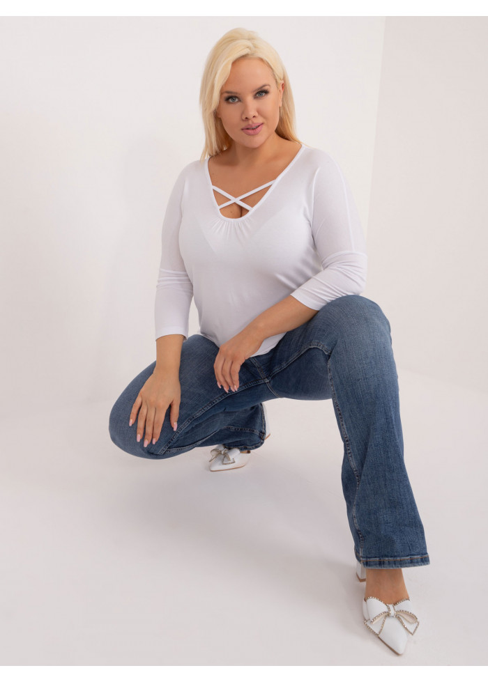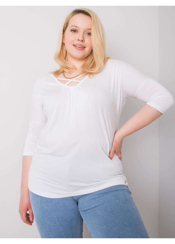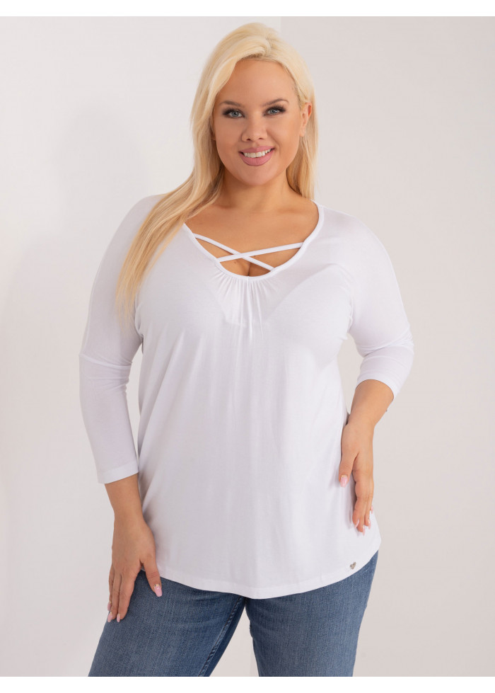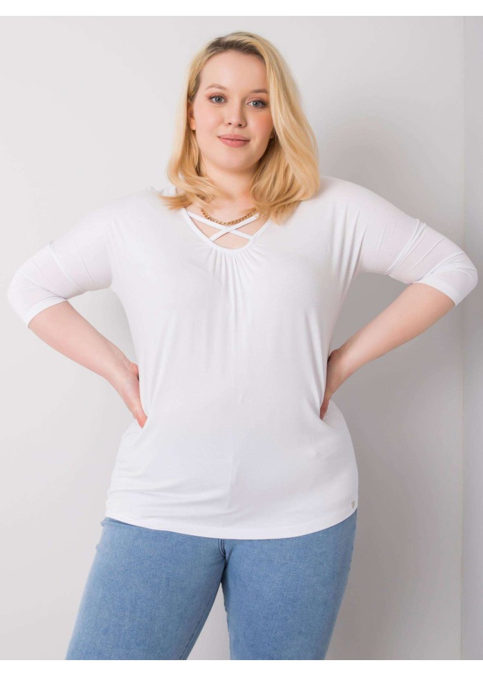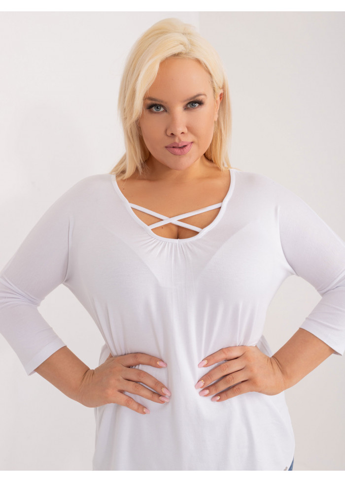 Dámske tričko, výstrih do v s prekrížením, 3/4 rukávy, voľnejsí strih, spôsob prania: pranie v práčke na 30°c, materiál: 90% viskóza, 10% elastan, modelka má na sebe veľkosť 2xl, rozmery modelky: výška 180 cm, prsia 113 cm, pás 93 cm, boky 123 cm., rozmer produktu meraného na plocho, vo veľkosti 2xl:, šírka pod plecami: 65 cm, celková dĺžka: 70 cm, dĺžka rukávov: 51 cm.