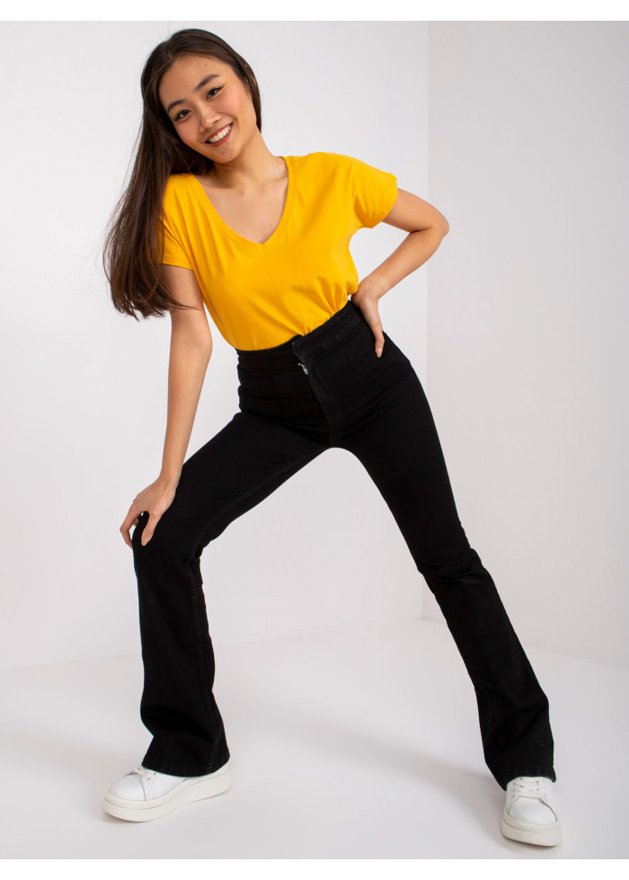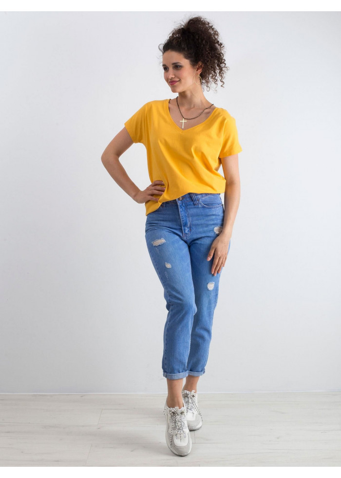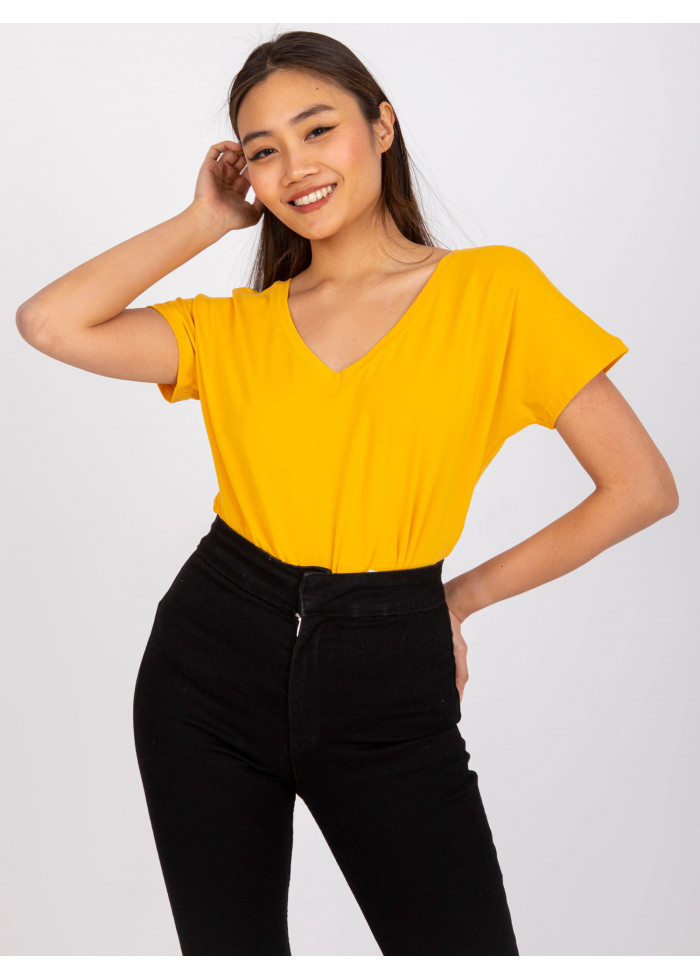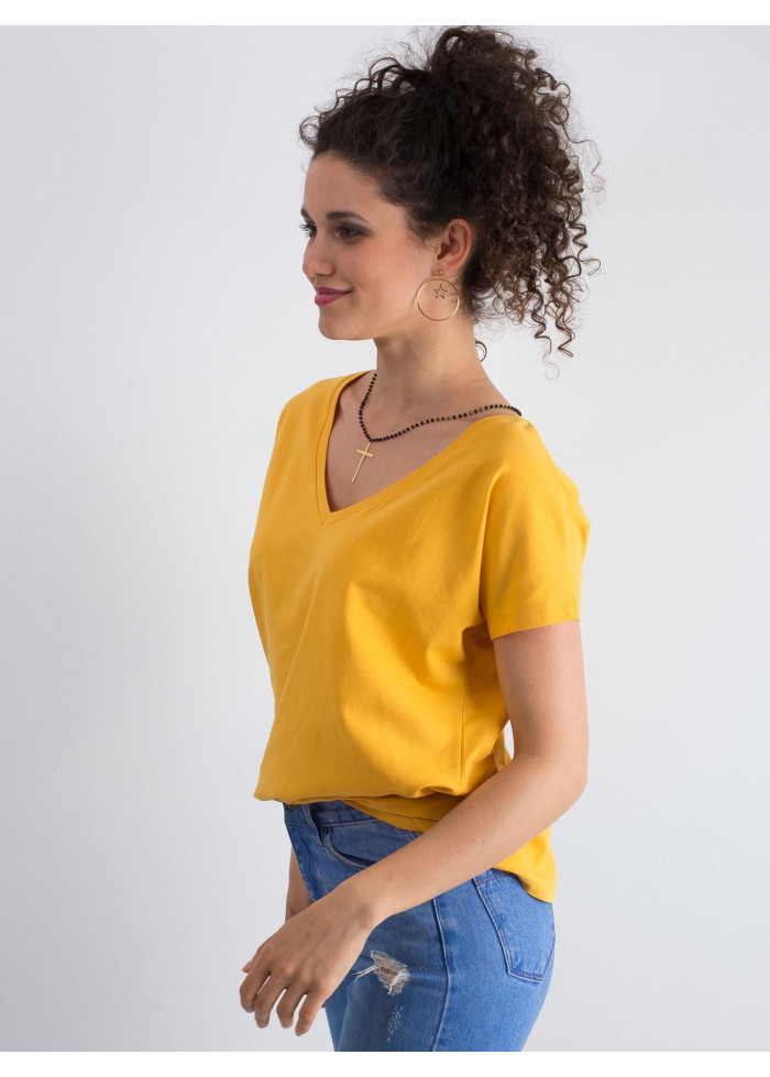 Bavlnené dámske tričko, výstrih do v, jednoduchý voľný strih, spôsob prania: pranie v práčke na 30°c, materiál: 90% bavlna, 10% elastan, modelka má na sebe veľkosť xs. miery modelky: výška 165 cm, prsia 83 cm, pás 64 cm, boky 89 cm., rozmer produktu meraného na plocho, vo veľkosti xs:, šírka pod plecami: 51 cm, celková dĺžka: 62 cm.