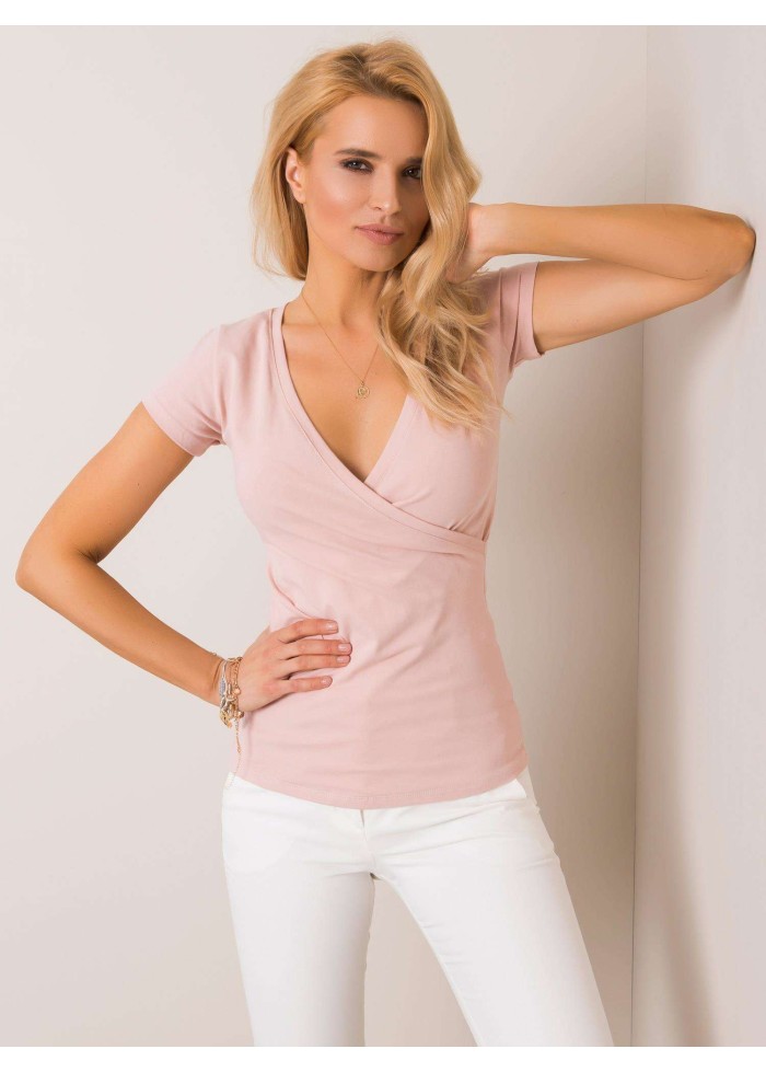 Rue paris, dámske tričko s krátkym rukávom, zavinovací štýl, výrazný výstrih do v, jednoduchý strih, obtiahnutý strih, spôsob prania: pranie v práčke na 30°c, materiál: 90% bavlna, 10% elastan, modelka má na sebe veľkosť s, miery modelky: výška 175 cm, prsia 84 cm, pás 65 cm, boky 92 cm..