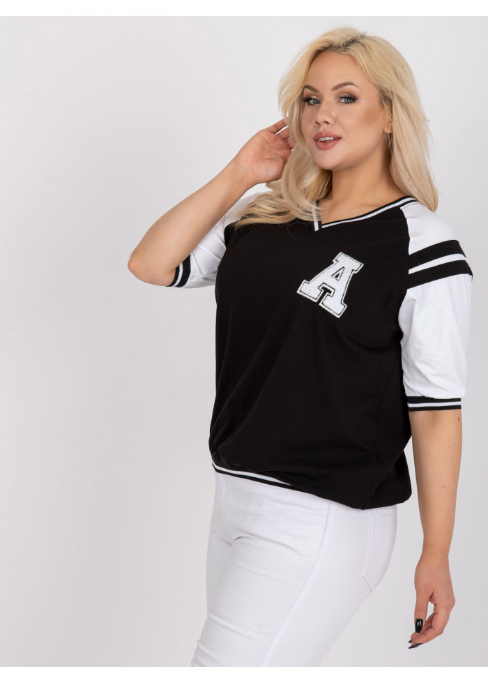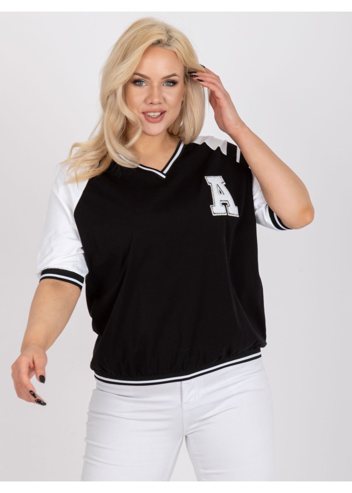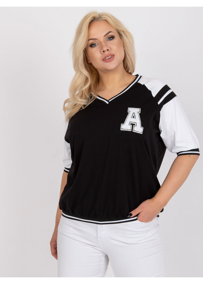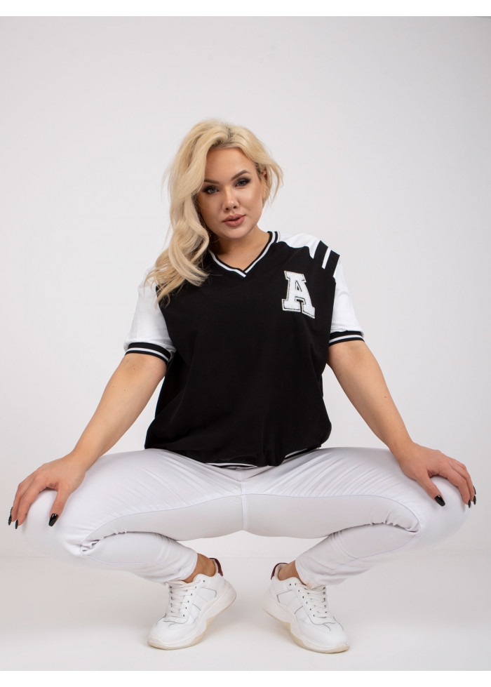 Bavlnené dámske tričko, výstrih do v, polovičné rukávy, kontrastné lémy, ozdobná nášivka, spôsob prania: pranie v práčke na 30°c, materiál: 90% bavlna, 10% elastan, univerzálna veľkosť, miery modelky: výška 172 cm, prsia 103 cm, pás 73 cm, boky 103 cm., rozmer produktu meraného na plocho:, šírka pod plecami: 62 cm, dĺžka rukáva: 33 cm, celková dĺžka: 63 cm.