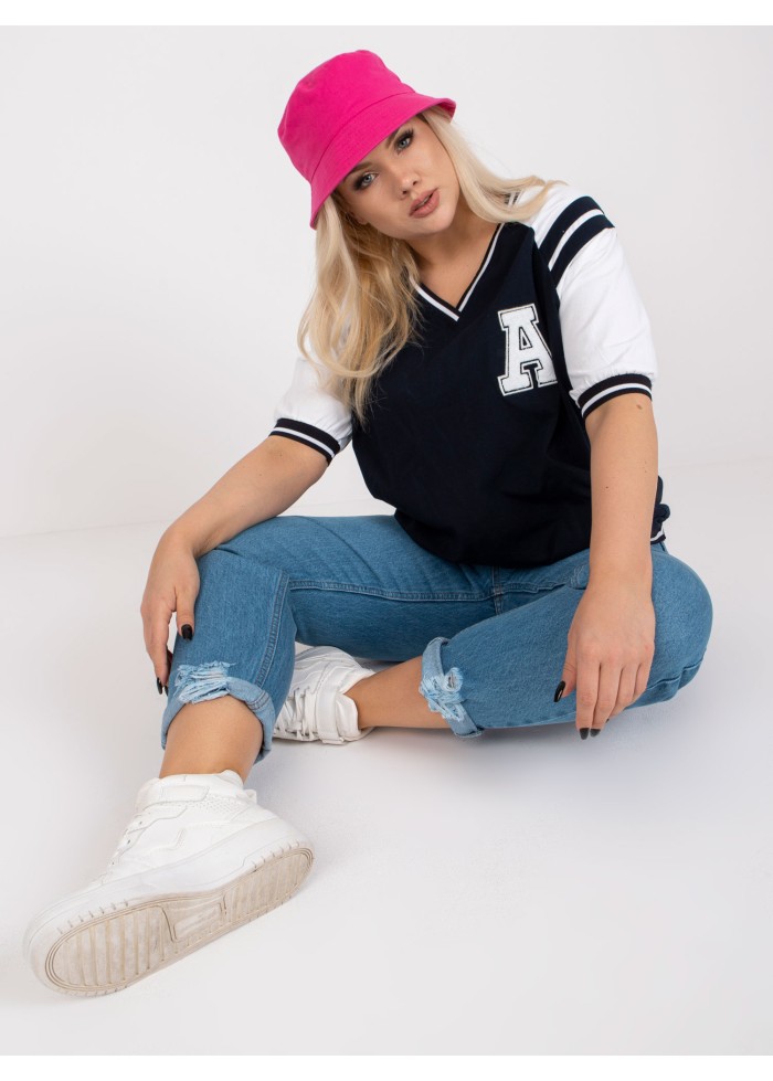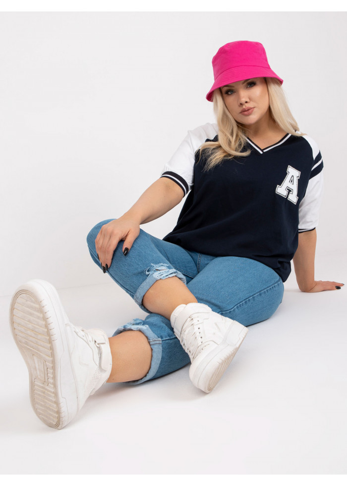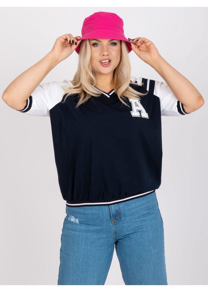 Bavlnené dámske tričko, výstrih do v, polovičné rukávy, kontrastné lémy, ozdobná nášivka, spôsob prania: pranie v práčke na 30°c, materiál: 90% bavlna, 10% elastan, univerzálna veľkosť, miery modelky: výška 172 cm, prsia 103 cm, pás 73 cm, boky 103 cm., rozmer produktu meraného na plocho:, šírka pod plecami: 62 cm, dĺžka rukáva: 33 cm, celková dĺžka: 63 cm.