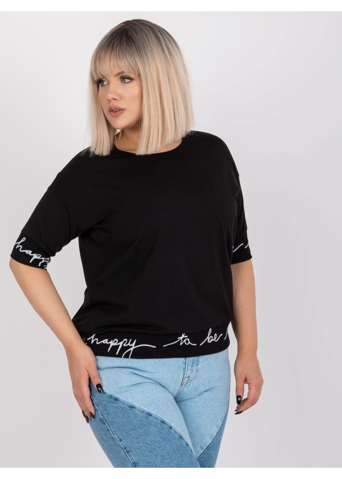 Bavlnené dámske tričko, polovičné rukávy, jemné sťahujúce lémy na koncoch rukávov a v spodnej časti, ozdobný nápis, okrúhly výstrih, spôsob prania: pranie v práčke na 30°c, materiál: 90% bavlna, 10% elastan, univerzálna veľkosť, miery modelky: výška 172 cm, prsia 103 cm, pás 73 cm, boky 103 cm., rozmer produktu meraného na plocho:, šírka pod plecami: 57 cm, dĺžka rukáva: 33 cm, celková dĺžka: 62 cm.