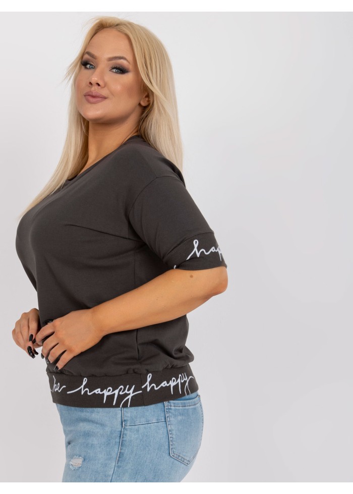 Bavlnené dámske tričko, polovičné rukávy, jemné sťahujúce lémy na koncoch rukávov a v spodnej časti, ozdobný nápis, okrúhly výstrih, spôsob prania: pranie v práčke na 30°c, materiál: 90% bavlna, 10% elastan, univerzálna veľkosť, miery modelky: výška 172 cm, prsia 103 cm, pás 73 cm, boky 103 cm., rozmer produktu meraného na plocho:, šírka pod plecami: 57 cm, dĺžka rukáva: 33 cm, celková dĺžka: 62 cm.